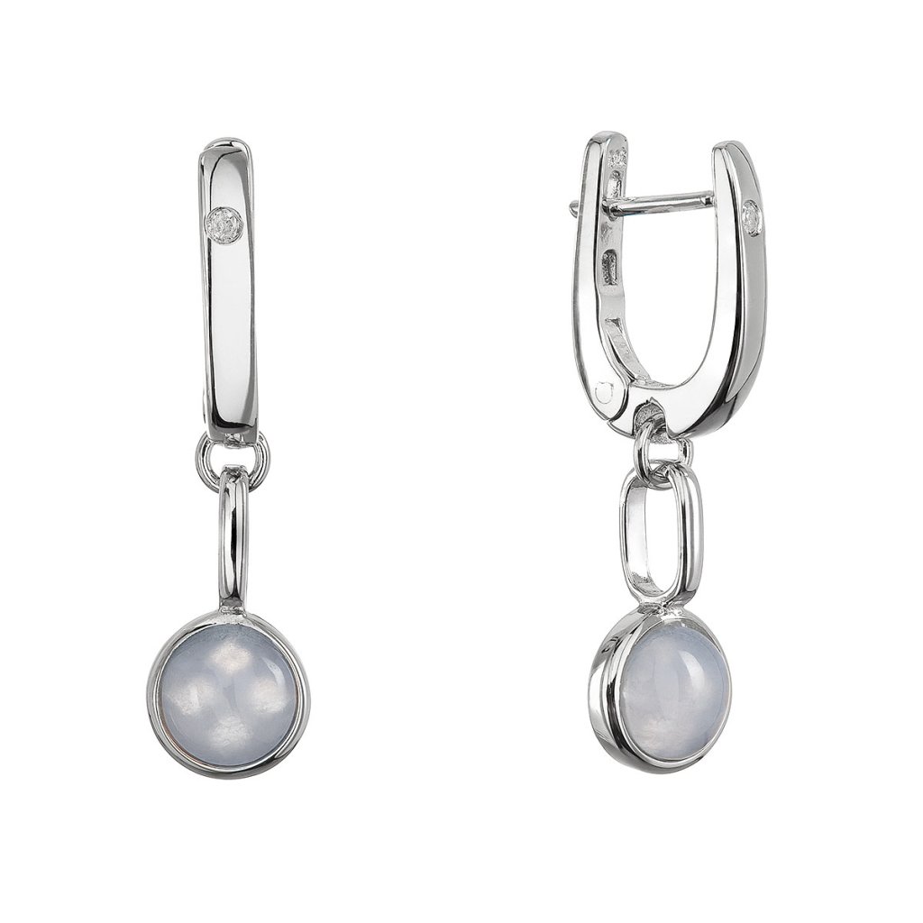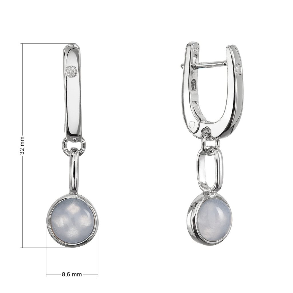 Náušnice sú vyrobené z rýdzeho striebra 925/1000 s ródiovou úpravou, ktorá zaisťuje mimoriadny lesk a ochranu pred oxidáciou. Zavesené okrúhle strieborné lôžko v sebe ukrýva výnimočný modrý krajkový achát v jemných pastelových tónoch, ktorého decentné prúžkovanie pripomína francúzsku čipku. Zapínanie na ruský patent garantuje pohodlné a spoľahlivé nosenie.