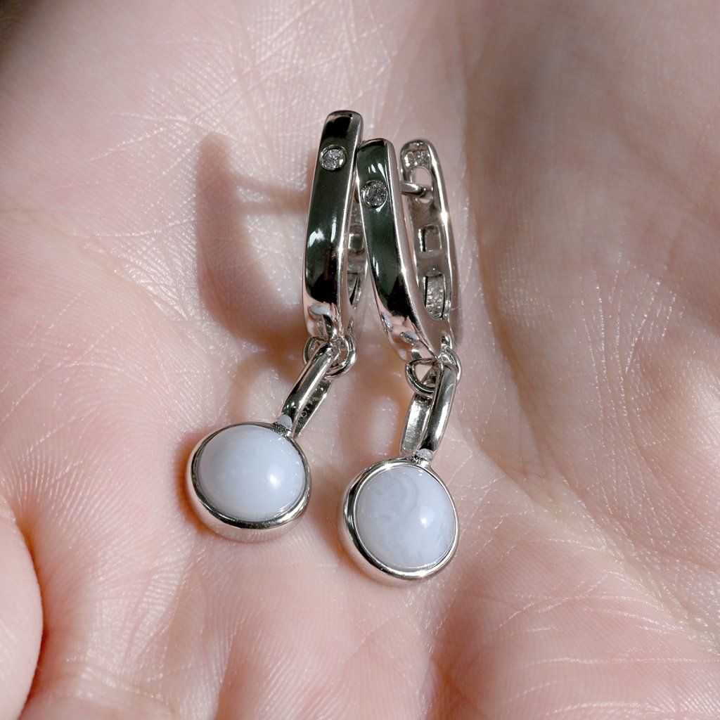 Strieborné visiace náušnice s čipkovaným achátom 11736.3