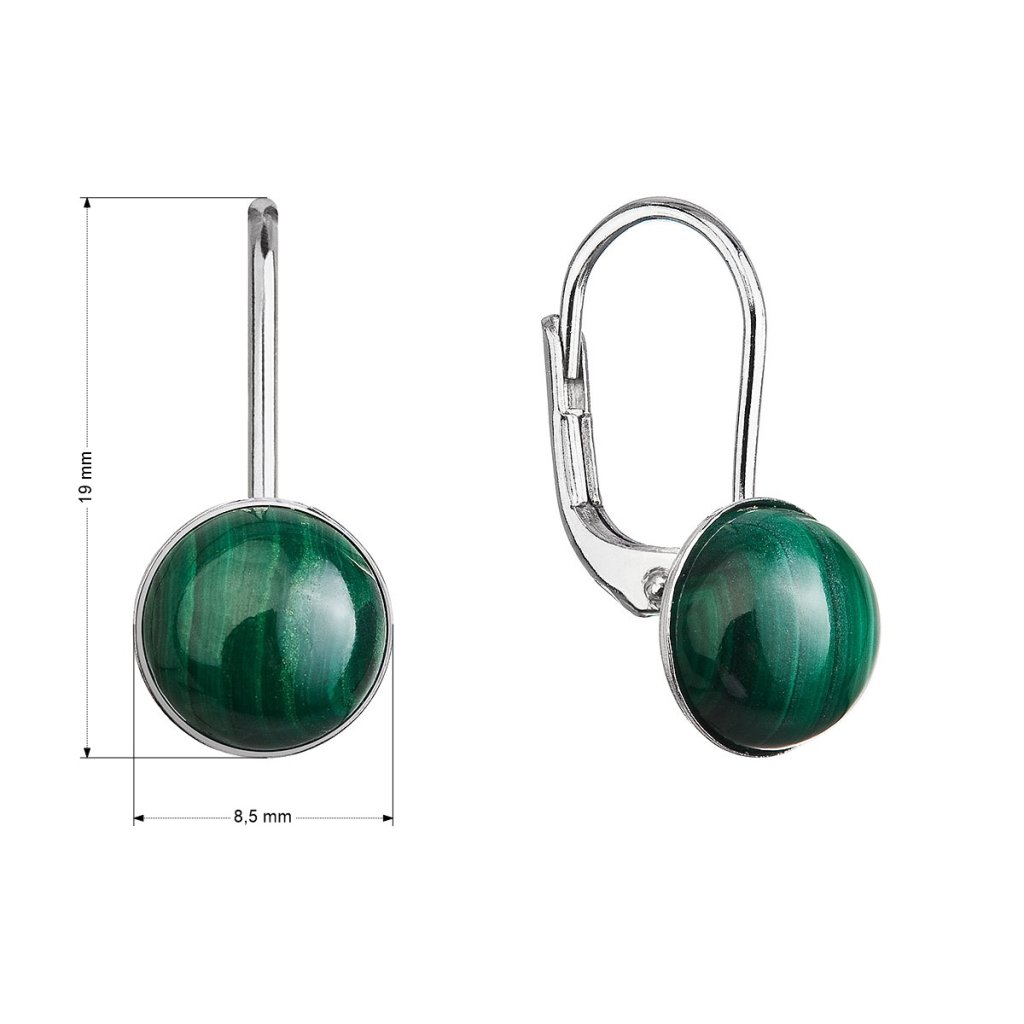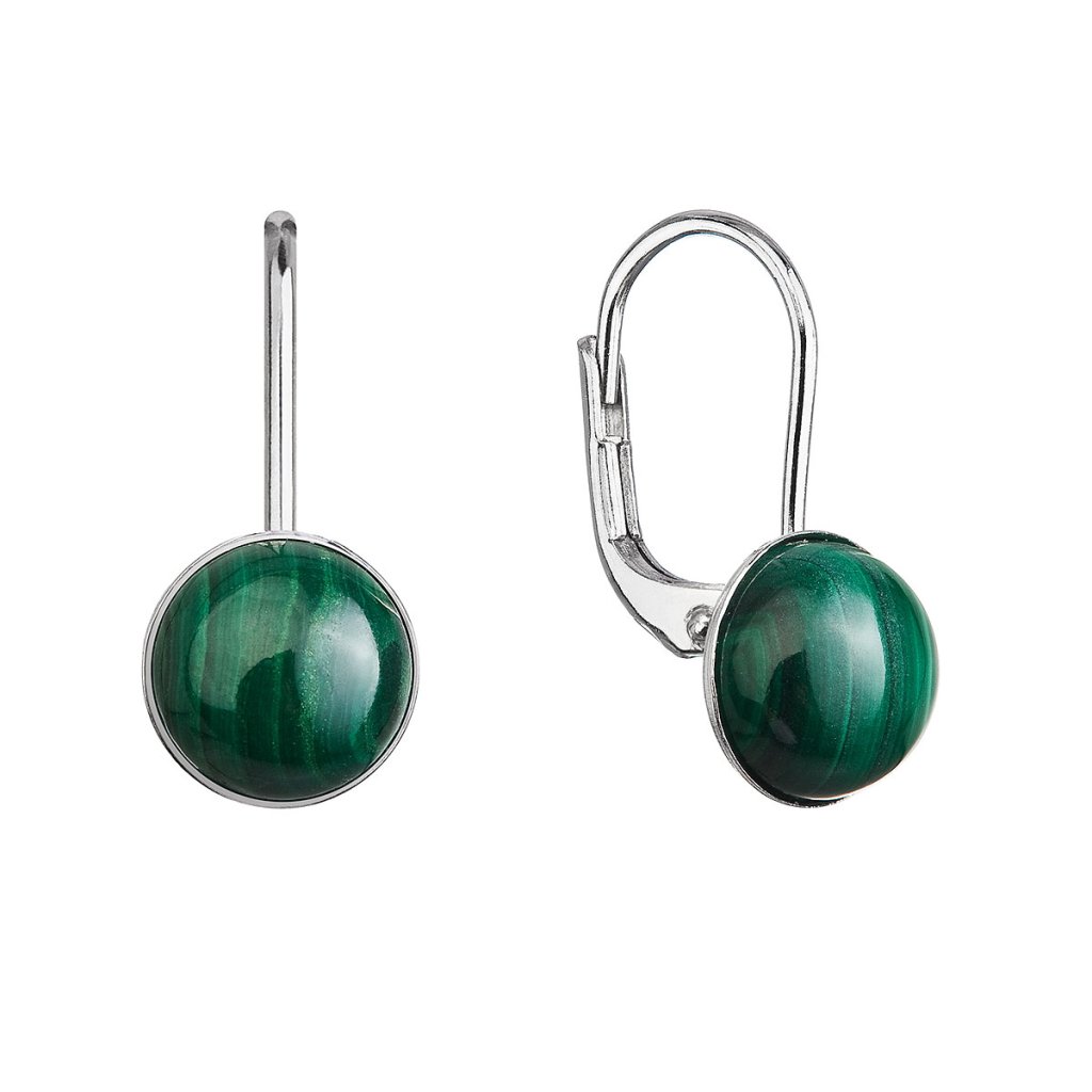 Strieborné visiace náušnice s minerálnymi kameňmi 11481.3 malachit