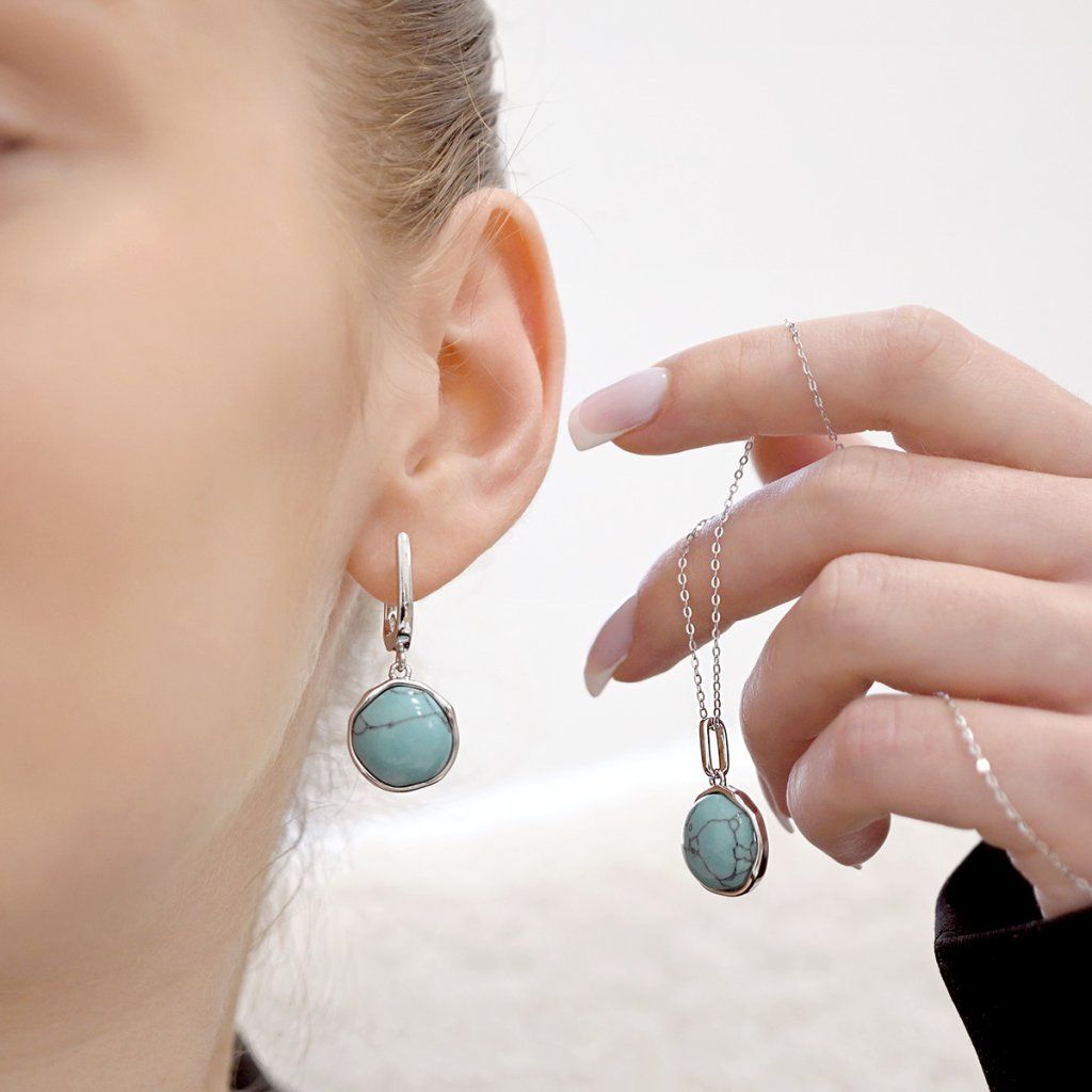 Strieborné visiace náušnice s tyrkysom 11735.3