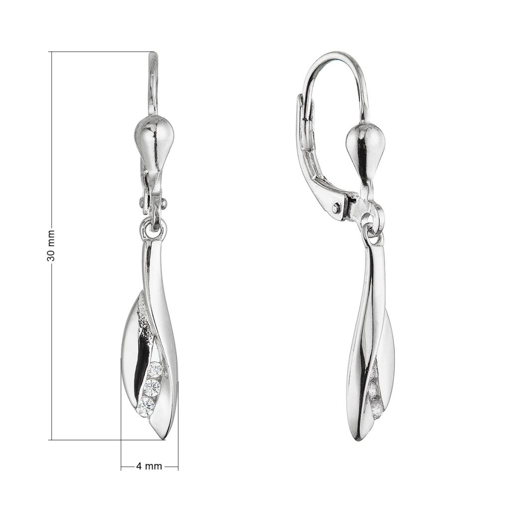 Strieborné visiace náušnice 11611.1 z kvalitného striebra o rýdzosti 925/1000 s ródiovou úpravou zaujmú svojim elegantným a nevšedným dizajnom v tvare slzy. Náušnice sú rozdelené do troch častí – najdlhšia hladká časť tvorí hornú líniu slzy a plynule prechádza do stredovej časti, ktorú zdobia tri jemne vsadené číre kamienky dodávajúce šperku decentný lesk. Tretia, spodná časť je opäť hladká, ale kratšia, čo vytvára harmonický vizuálny kontrast a dodáva náušniciam ľahkosť.