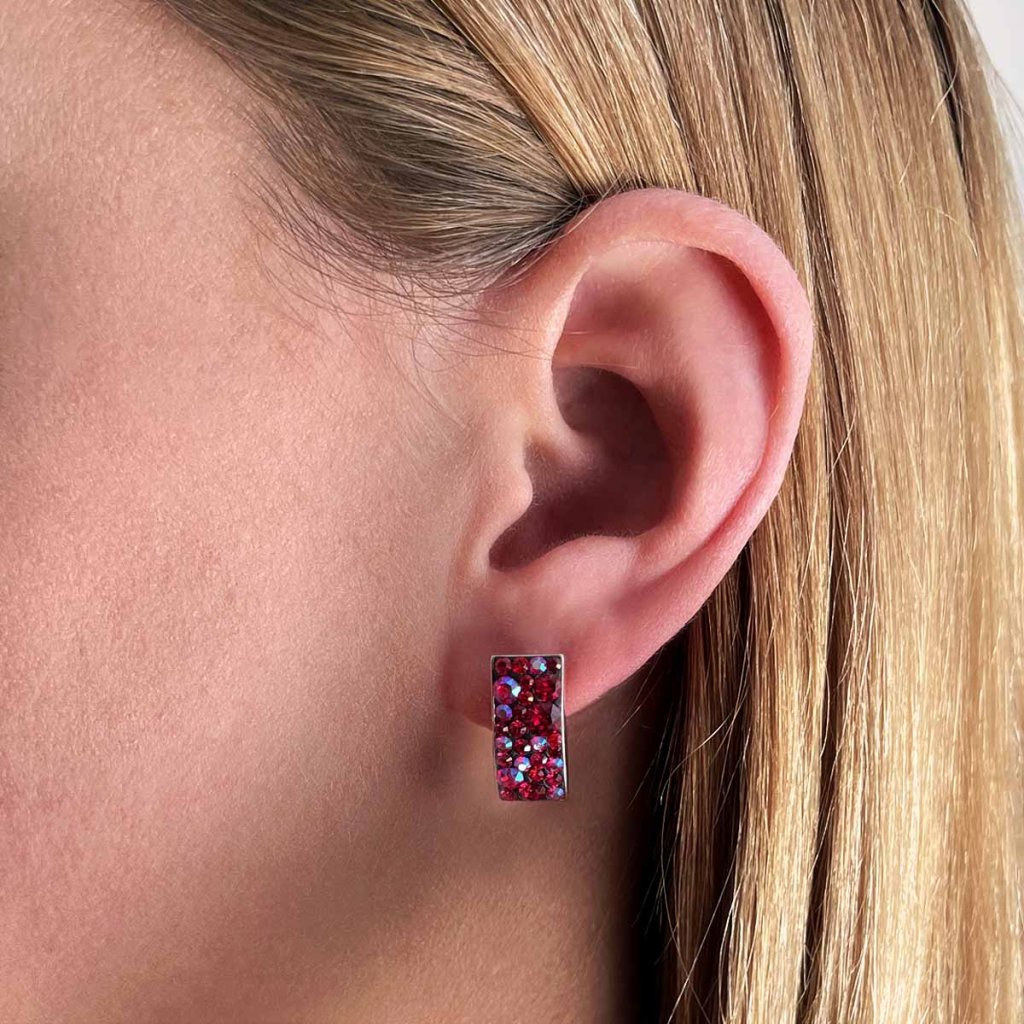 Obdĺžnikové náušnice vyzerajú ako rozsypané čerešne na lúke. Pripomeňte si letné teplé dni!Visiace náušnice 31303.3 cherry sú vyrobené zo striebra o rýdzosti 925/1000 so špeciálnou povrchovou úpravou. Ródium ochráni náušnice pred sčernením, zožltnutím aj poškriabaním. Neobsahujú žiadny nikel , a tak sa nemusíte obávať alergických reakcií. Obdĺžnikový tvar je vysadený drobučkými kryštálmi Swarovski v rôznych odtieňoch červenej.