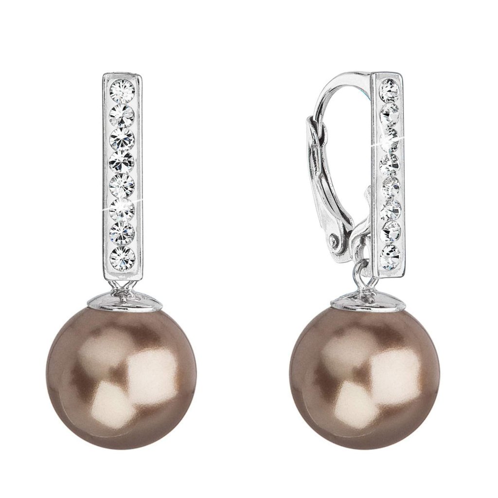 Strieborné visiace náušnice so Swarovski perlou a kryštálmi 71121.3 bronze