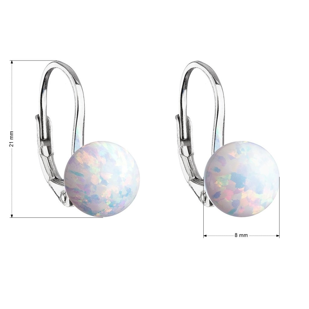 Parametre strieborných náušníc visiace so syntetickým opálom biele okrúhle 11245.1
