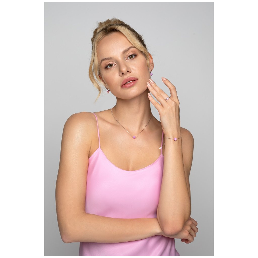 Strieborné visiace náušnice so syntetickým opálom ružové okrúhle 11245.3