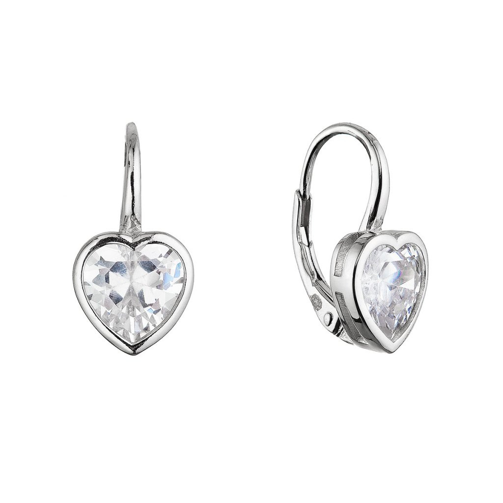 Strieborné náušnice 11648.1 z kvalitného striebra 925/1000 s ródiovou úpravou očarí romantickým dizajnom v tvare srdca, ktorý je ideálny na vyjadrenie nežných emócií. Dominantným prvkom každej náušnice je veľký zirkón vo farbe kryštál brúsený do tvaru srdca, ktorý žiari svojou čistotou a jemným leskom.