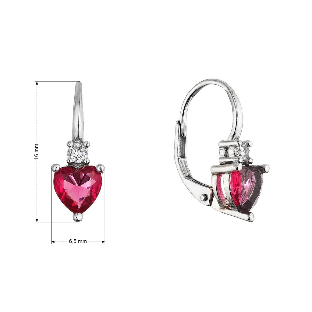 Strieborné visiace náušnice srdiečka 11650.3 ruby