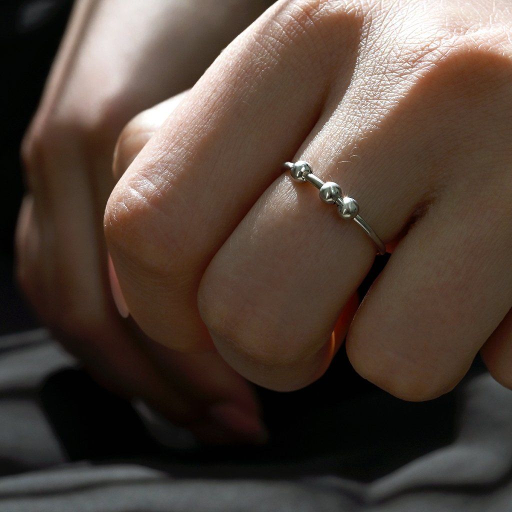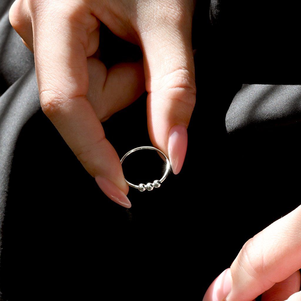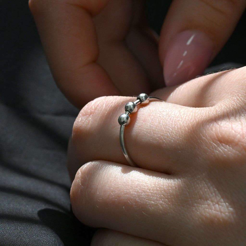 Minimalistický antistresový strieborný prsteň s pohyblivými guličkami , ktoré môžete jemne pretáčať medzi prstami.