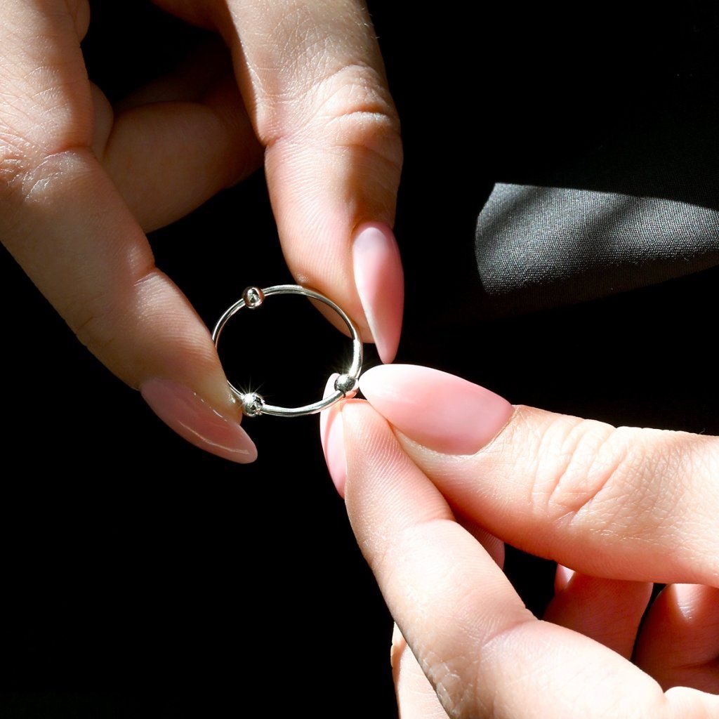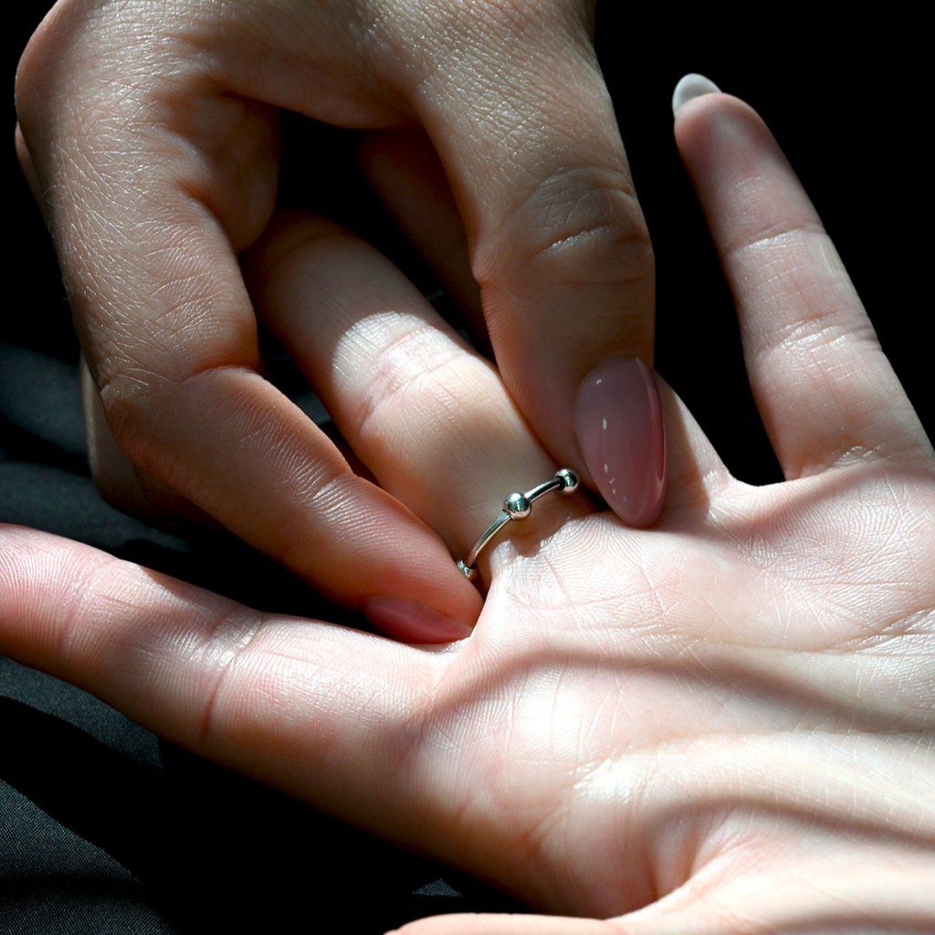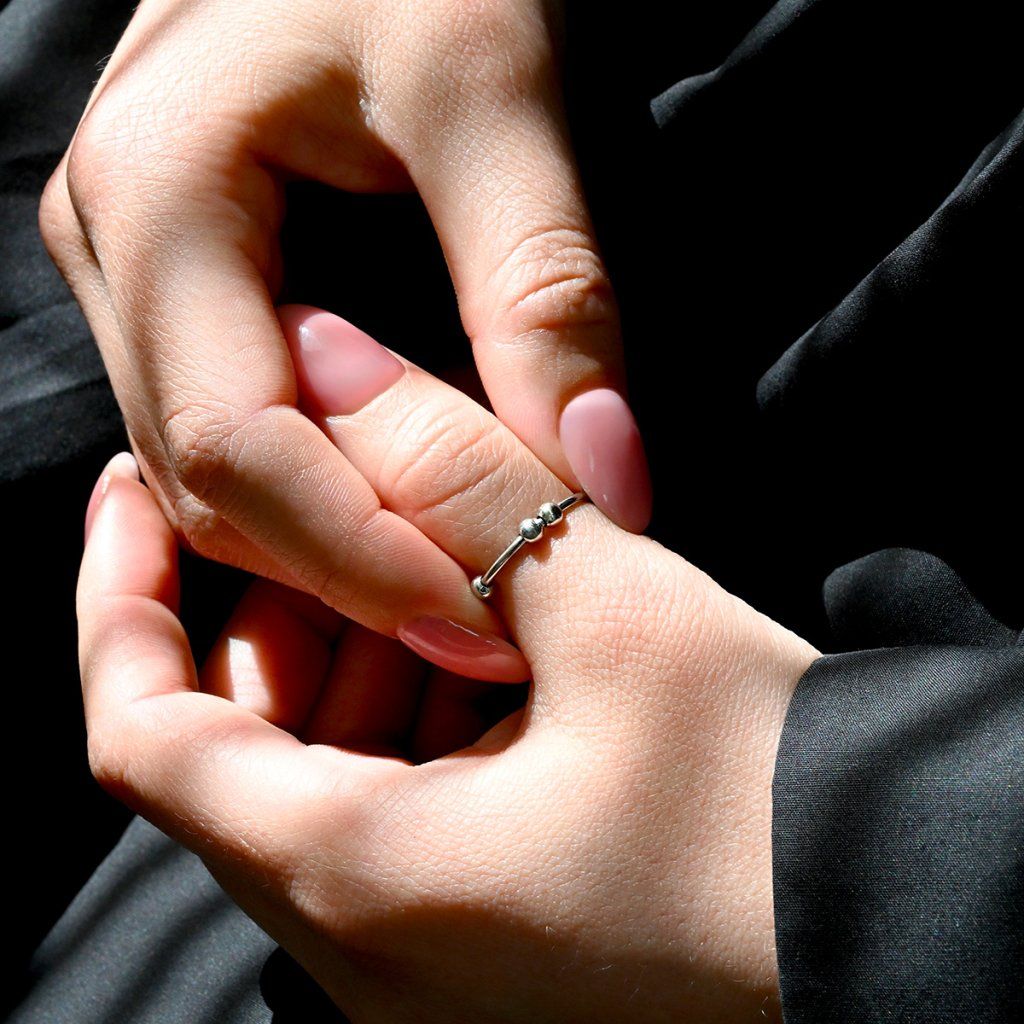 Minimalistický antistresový strieborný prsteň s pohyblivými guličkami , ktoré môžete jemne pretáčať medzi prstami.