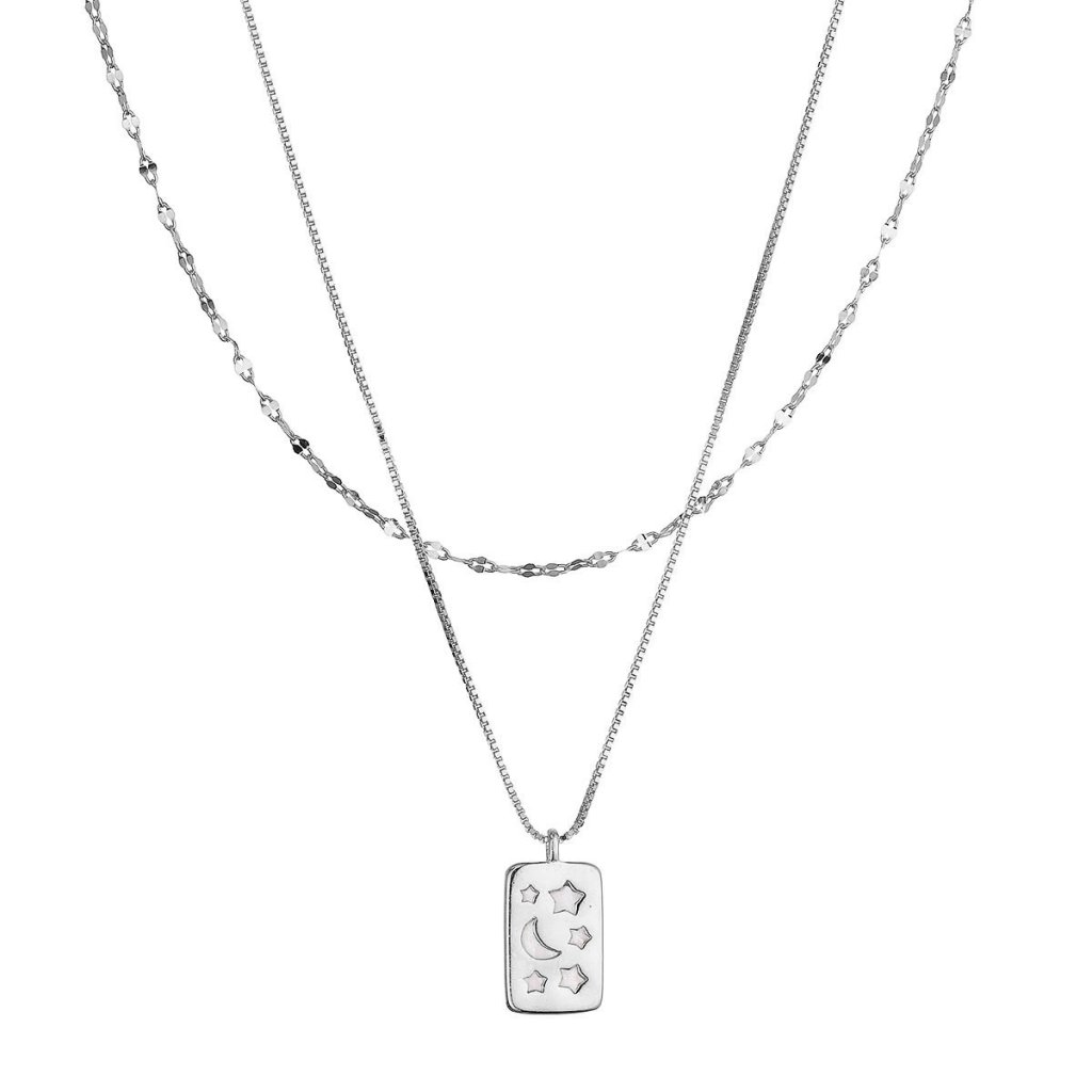 Strieborný vrstvený náhrdelník 12155.1 je dokonalým spojením moderného štýlu a jemnej elegancie. Dve dokonale zladené retiazky tvoria jeden harmonický celok – robustnejšia retiazka s väčšími očkami a jemnejší variant s očarujúcim príveskom v tvare obdĺžnika.