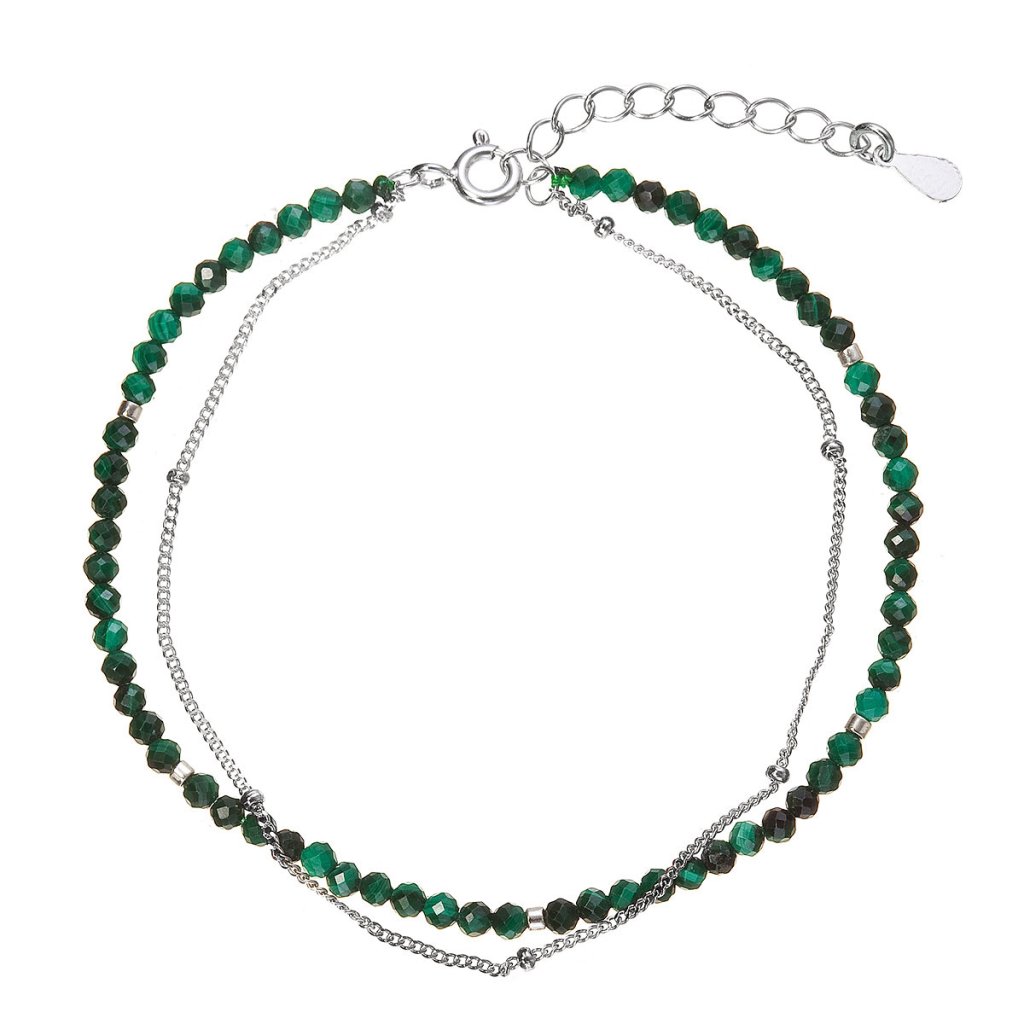Strieborný dvojitý náramok s malachitmi 13114.3