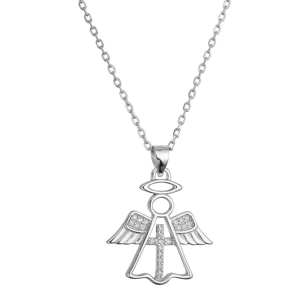 Strieborný náhrdelník anjel s krížikom 12123.1