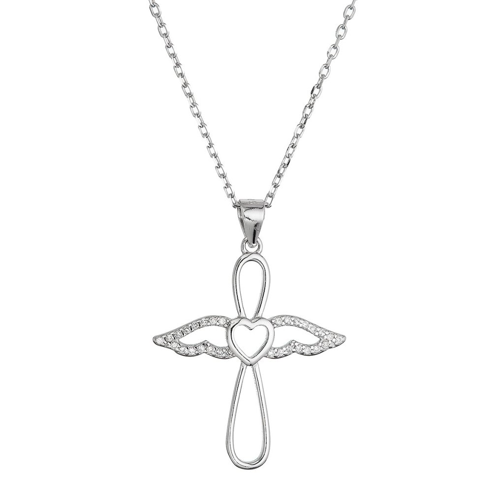Strieborný náhrdelník s príveskom anjela je krásnym symbolom ochrany a lásky . Prívesok anjela má jemnú a detailnú siluetu, s krídlami zdobenými trblietavými zirkónmi, ktoré dodávajú šperku nadpozemský lesk. Uprostred postavy anjela sa nachádza srdce, symbol lásky a starostlivosti.
