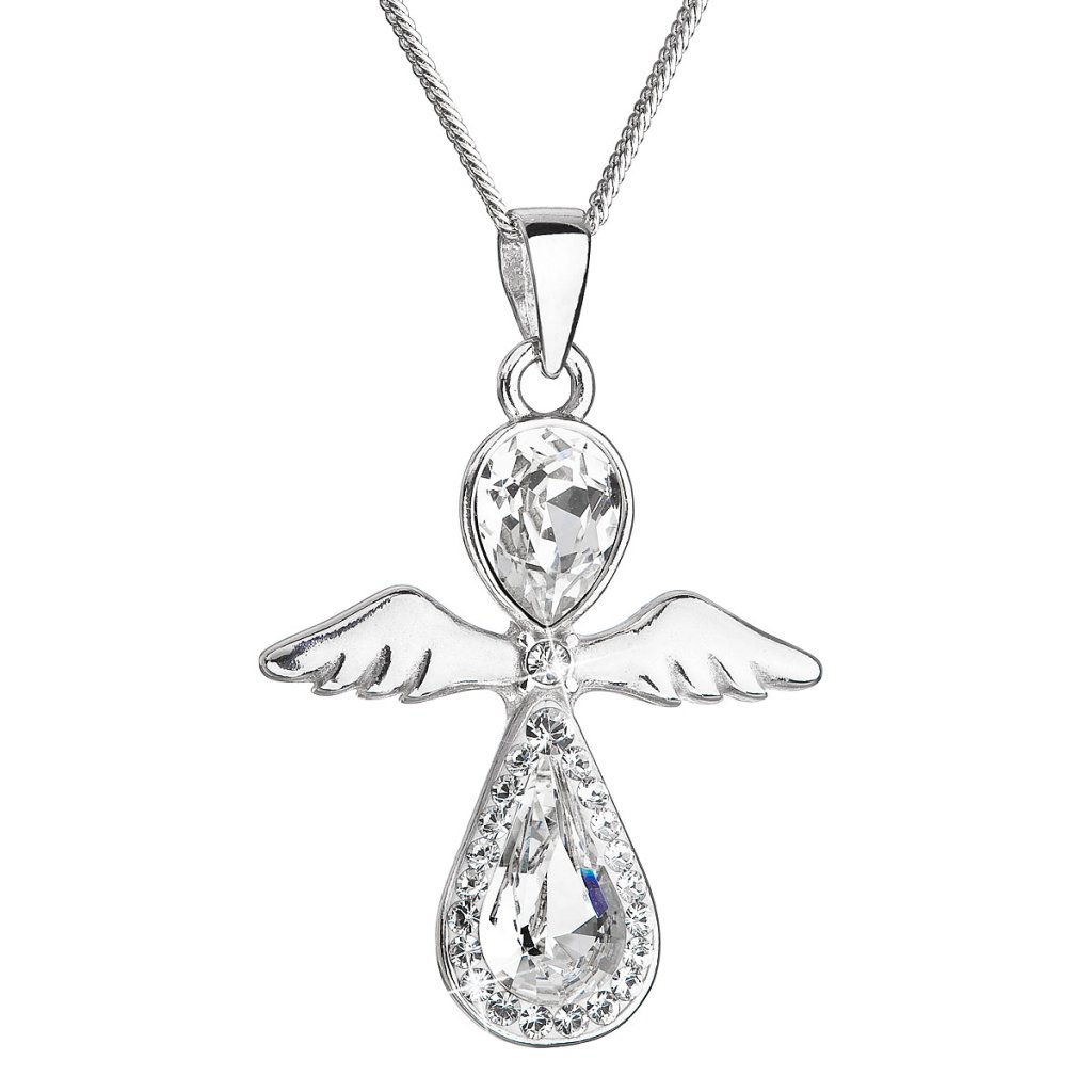 Strieborný náhrdelník anjel so Swarovski kryštálmi biely 32072.1