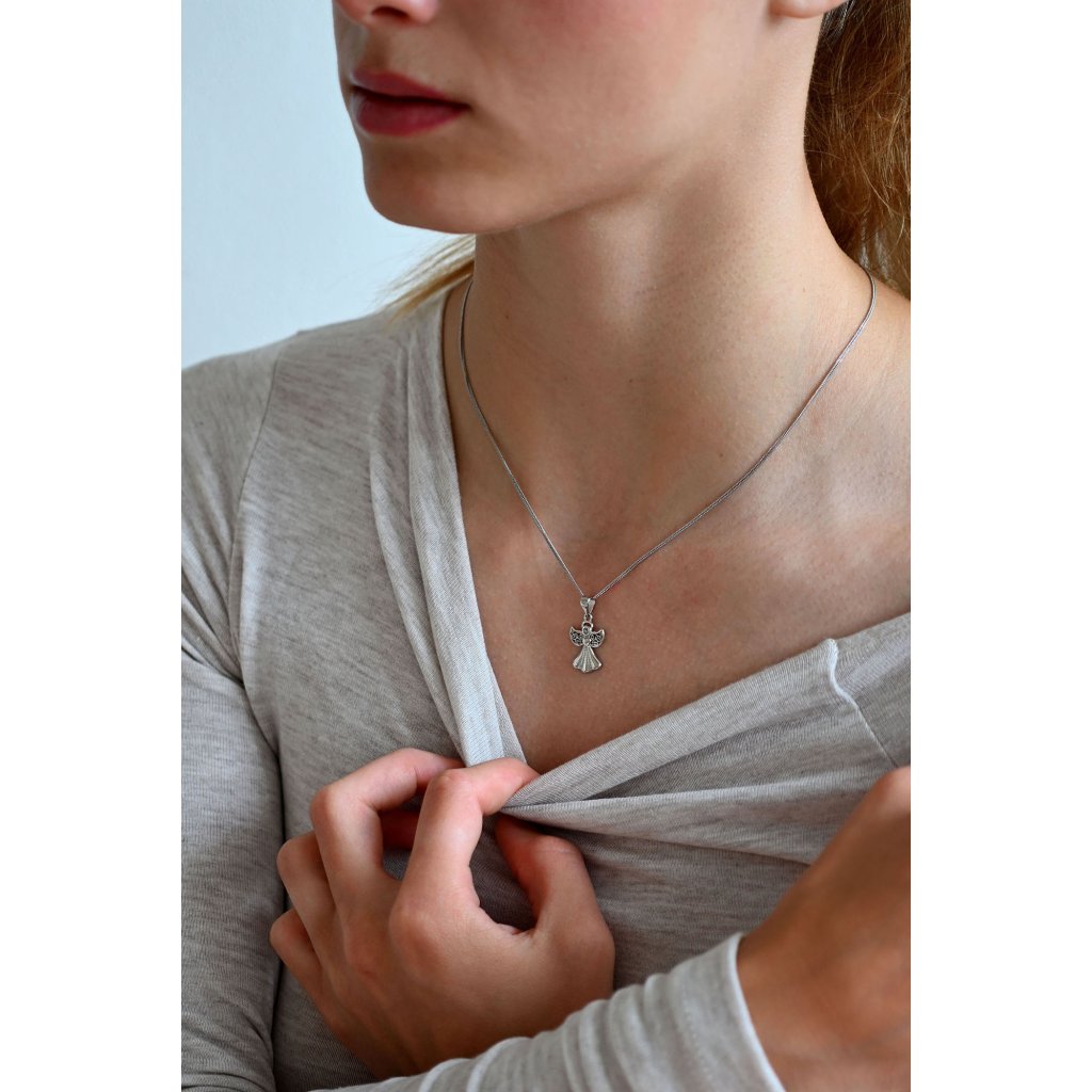 Strieborný náhrdelník anjel so Swarovski kryštálmi biely 32077.1