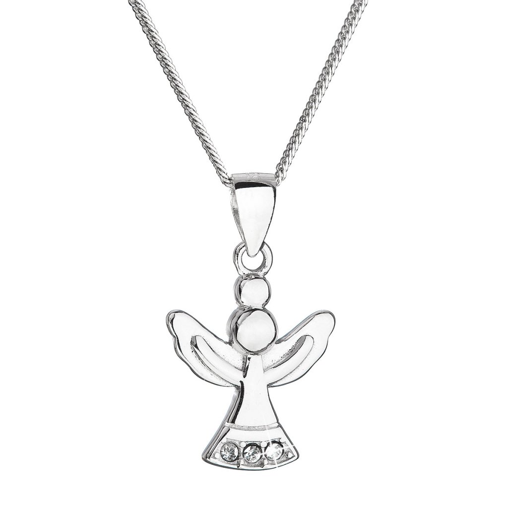 Strieborný náhrdelník anjel so Swarovski kryštálmi biely 32078.1