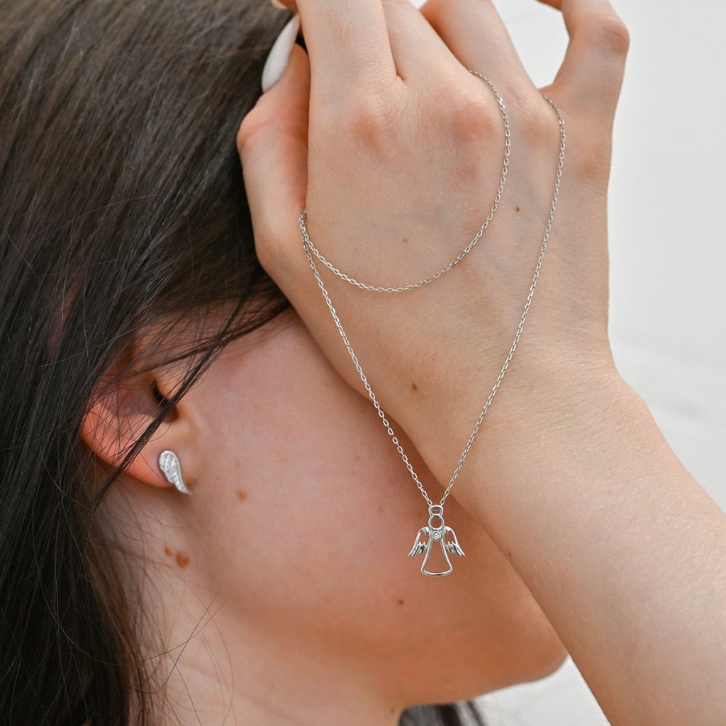Tento náhrdelník s anjelikom s malým zirkónom je žiarivým doplnkom pre každú ženu. Anjelik symbolizuje ochranu, lásku a dodáva náhrdelníku jemný a sentimentálny vzhľad.Náhrdelník je vyrobený zo striebra o rýdzosti 925/1000 a je opatrený vrstvou ródia , ktorá šperk ochráni pred sčernením, zožltnutím alebo poškriabaním.