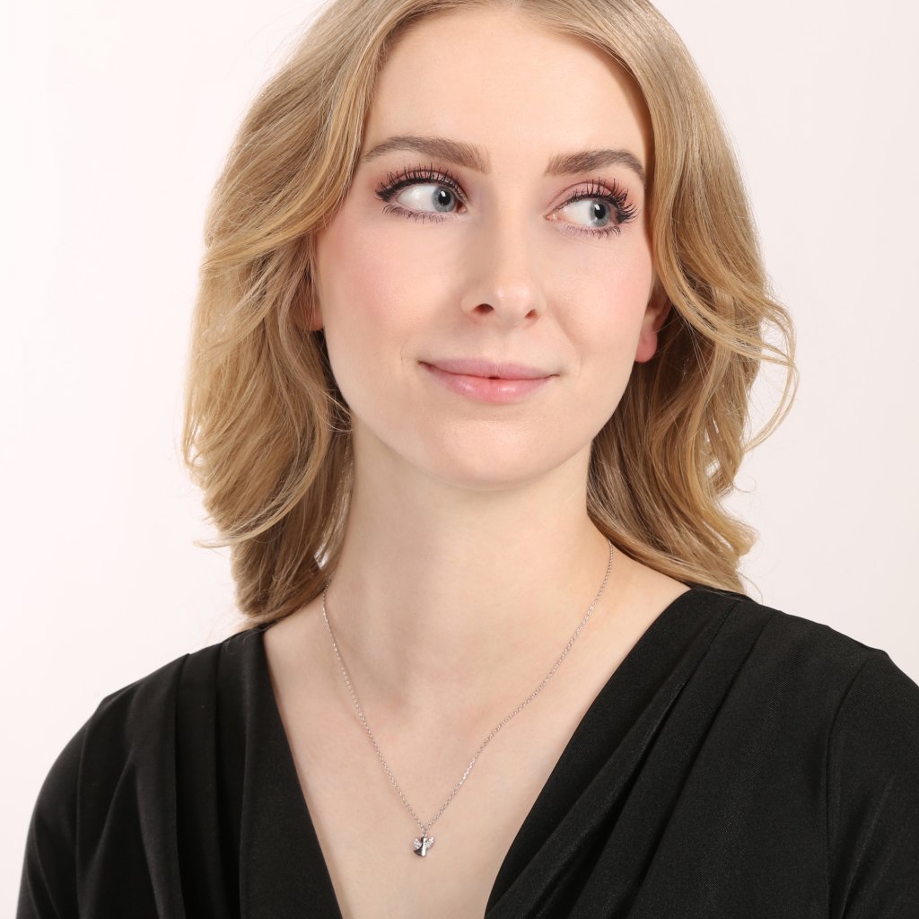 Tento náhrdelník s moderne vyobrazeným anjelikom je žiarivým doplnkom pre každú ženu. Anjelik symbolizuje ochranu, lásku a dodáva náhrdelníku jemný a sentimentálny vzhľad. Krídla anjela sú ozdobené zirkónmi.
