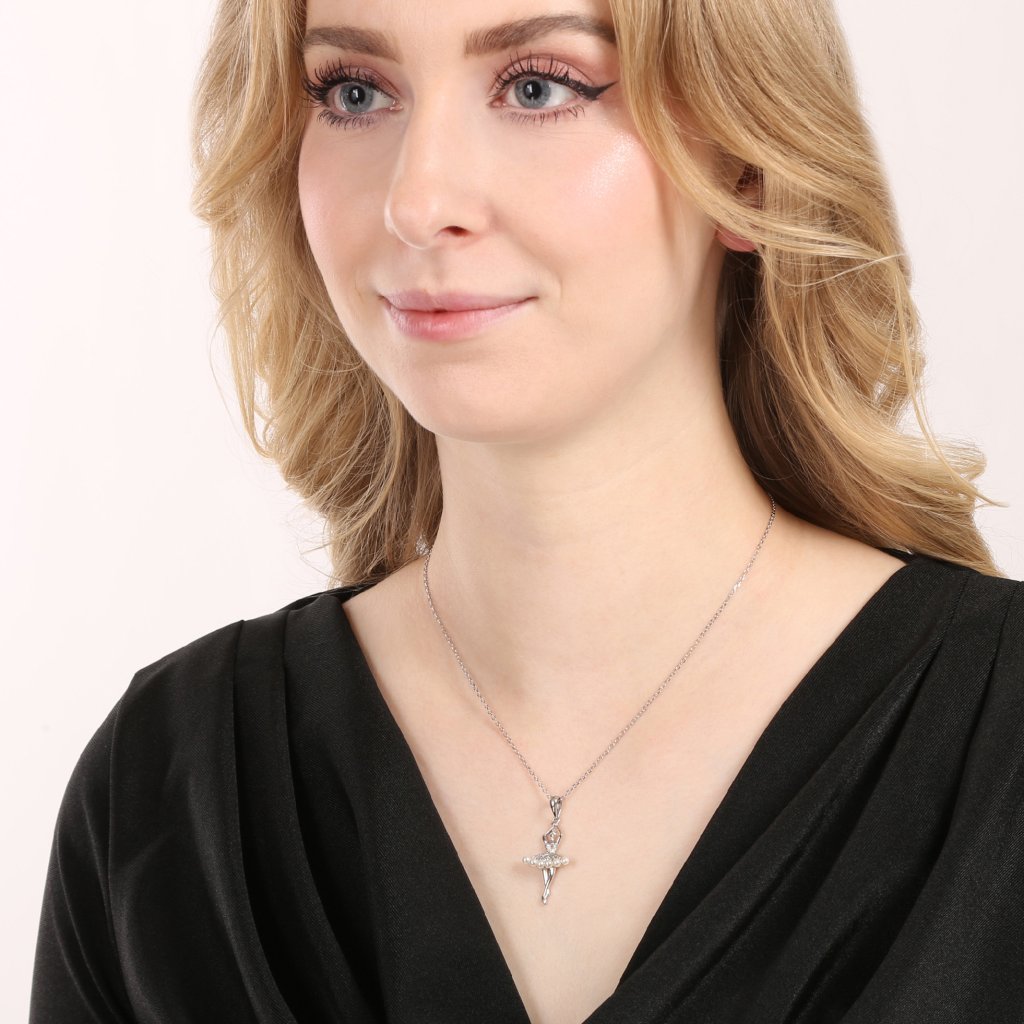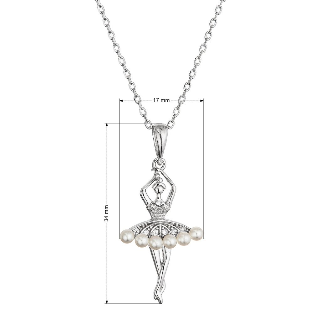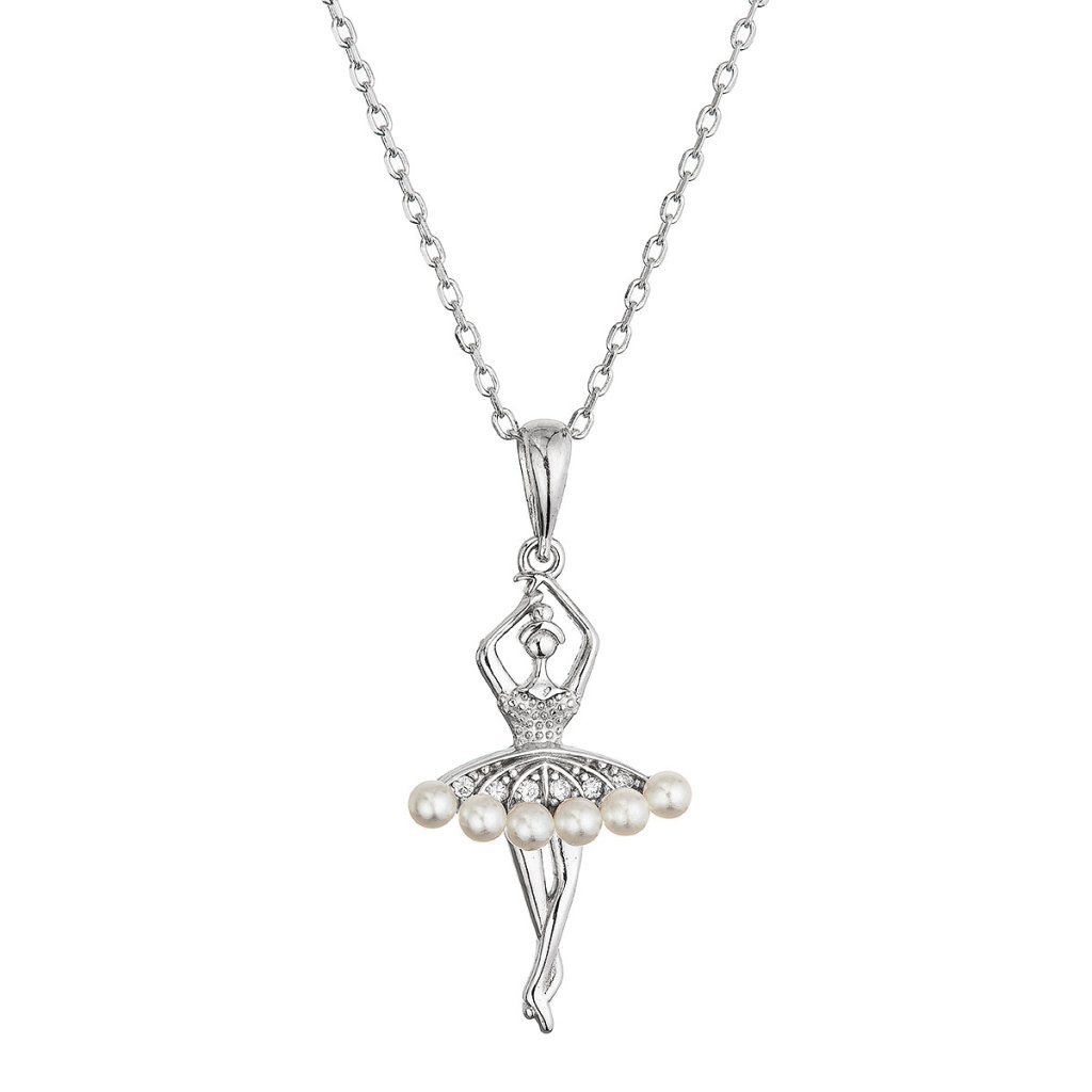Elegantný strieborný náhrdelník s príveskom baletky je ako stvorený pre všetkých, ktorí milujú jemnosť, ladnosť a pôvab. Prívesok v tvare baletky očarí na prvý pohľad – jej strieborná sukienka je zdobená nežnými bielymi shell perličkami, ktoré jej dodávajú nádych krehkej krásy.