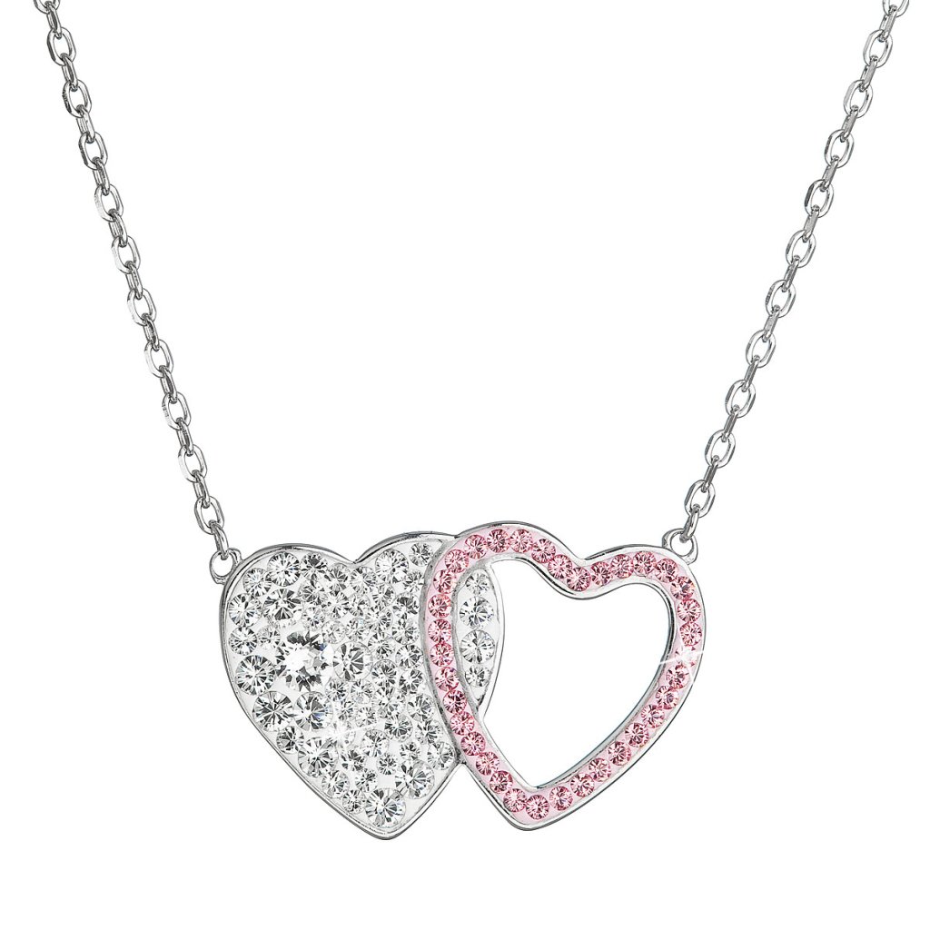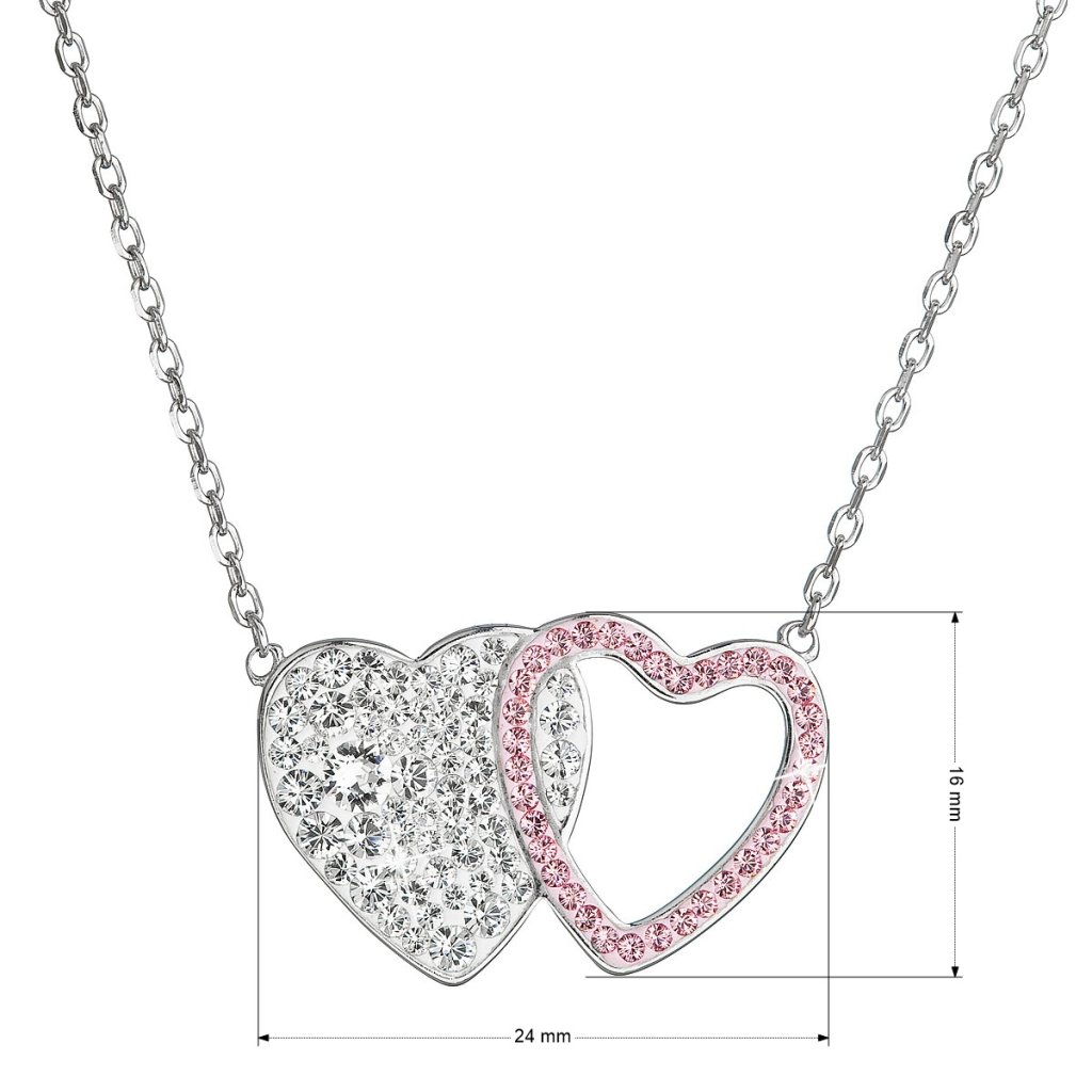 Strieborný náhrdelník dvojité srdce so Swarovski kryštálmi 32079.3 lt.rose