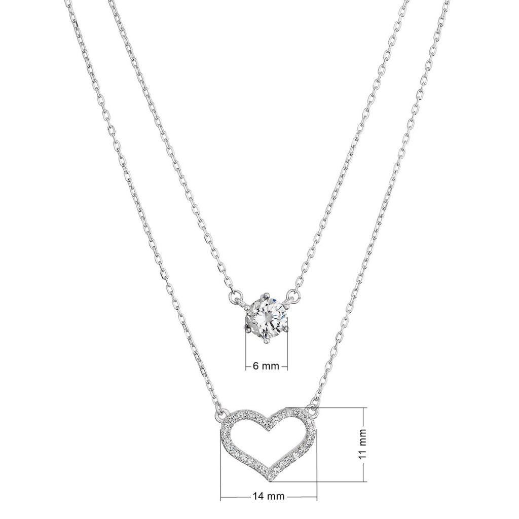 Strieborný náhrdelník dvojitý so srdiečkom a zirkónom 12175.1