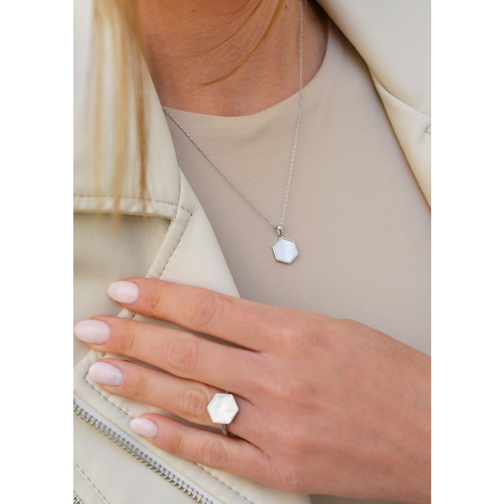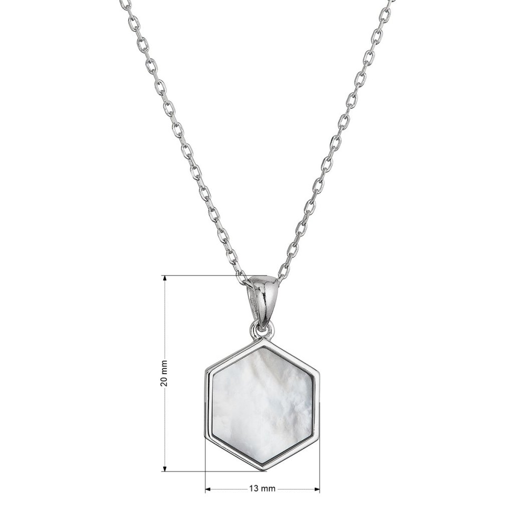 Strieborný náhrdelník hexagón s bielou perleťou 12149.1