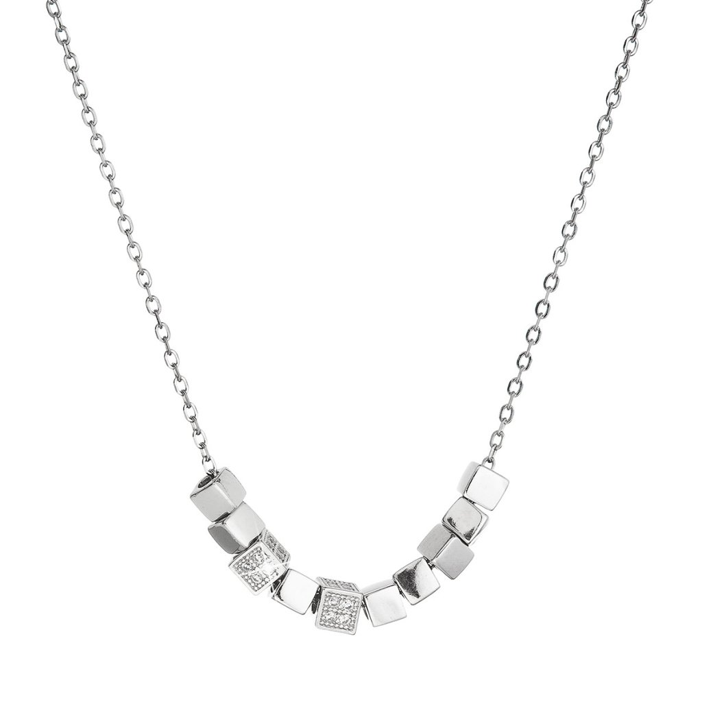 Strieborný náhrdelník kocky na retiazke so zirkónmi 12071.1