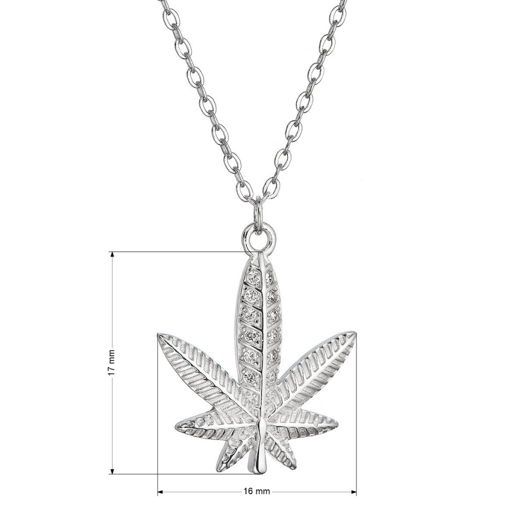 Náhrdelník so zirkónmi zdobeným konopným listom, ktorý je symbolom sily, odvahy a prírodnej krásy.Náhrdelník je vyrobený zo striebra o rýdzosti 925/1000 a je opatrený vrstvou ródia , ktorá šperk ochráni pred sčernením, zožltnutím alebo poškriabaním.