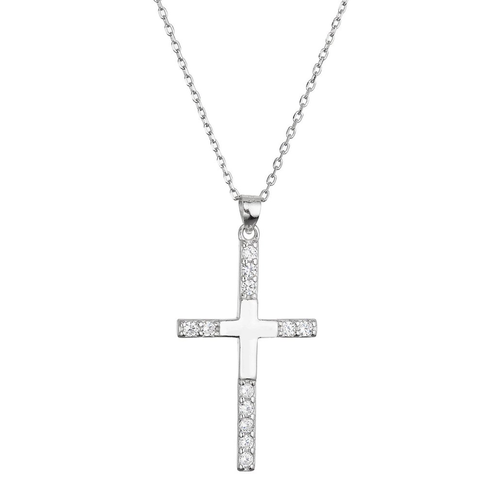 Strieborný náhrdelník kríž so zirkónmi 12137.1