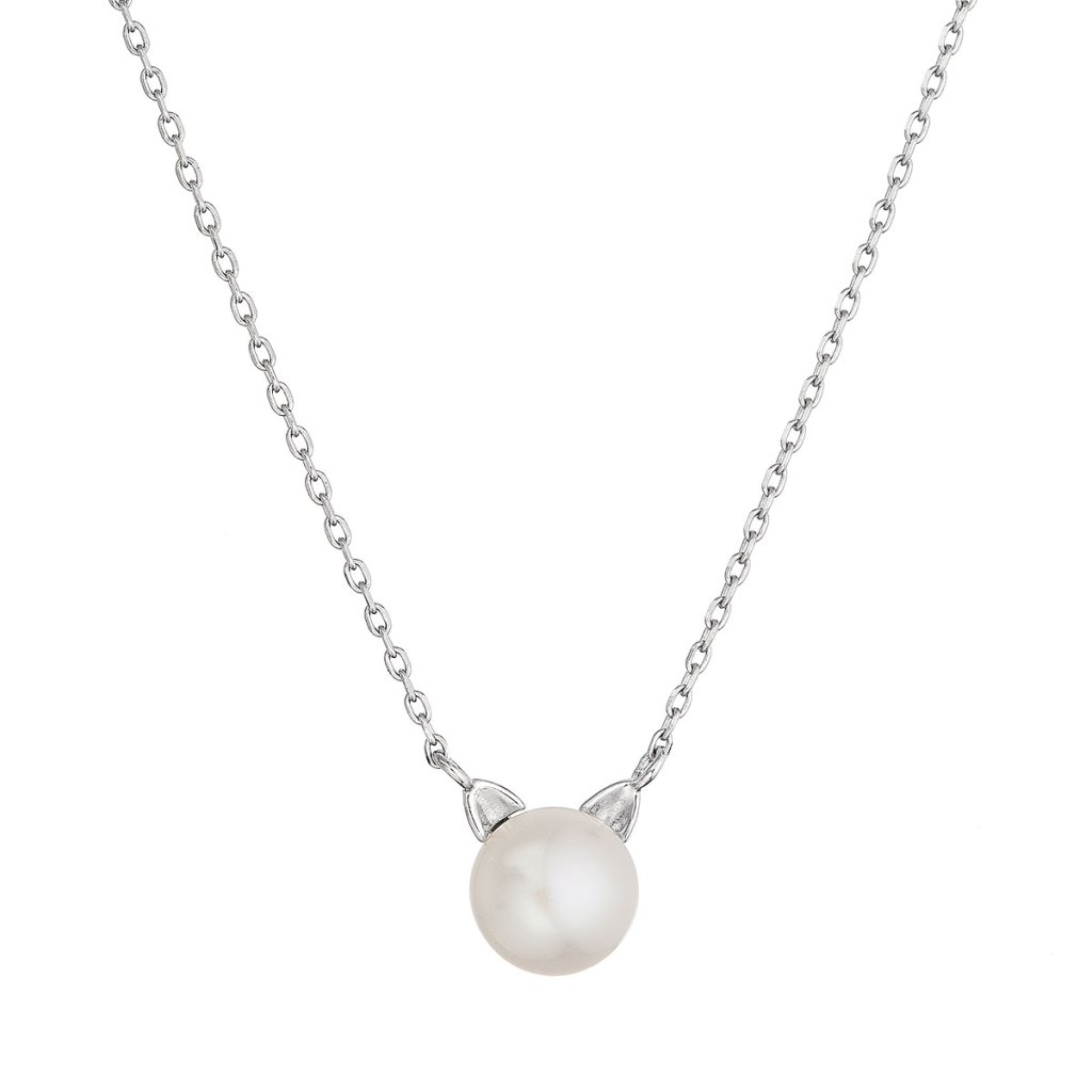 Strieborný náhrdelník mačička s riečnou perlou 22052.1