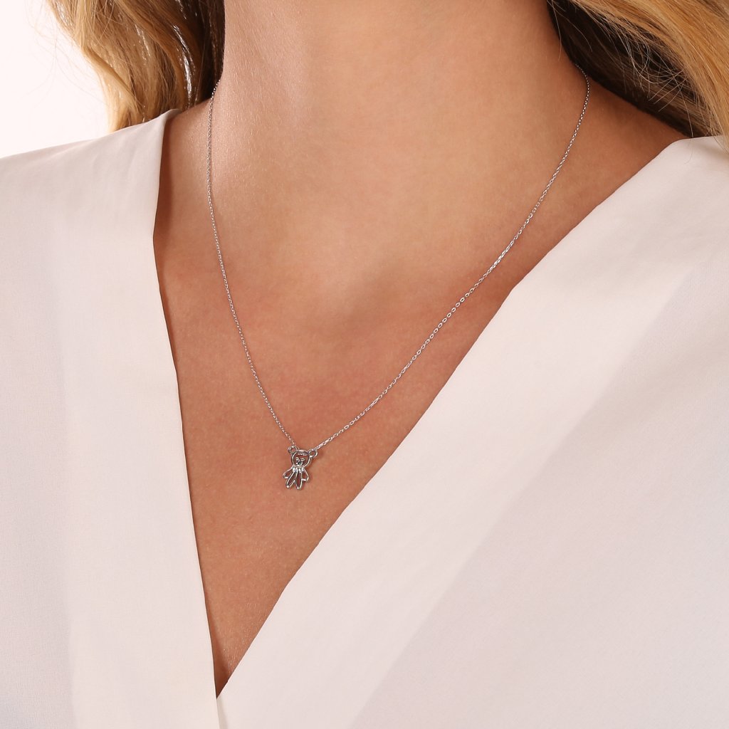 Táto minimalistická retiazka s medvedíkom je pôvabnou zmesou detskej roztomilosti a čistých minimalistických línií. Je vhodný ako darček k narodeninám, sviatku alebo pre radosť z nového šperku ako pre deti, tak aj pre ženy.Náhrdelník je vyrobený zo striebra o rýdzosti 925/1000 a je opatrený vrstvou ródia , ktorá šperk ochráni pred sčernením, zožltnutím alebo poškriabaním.