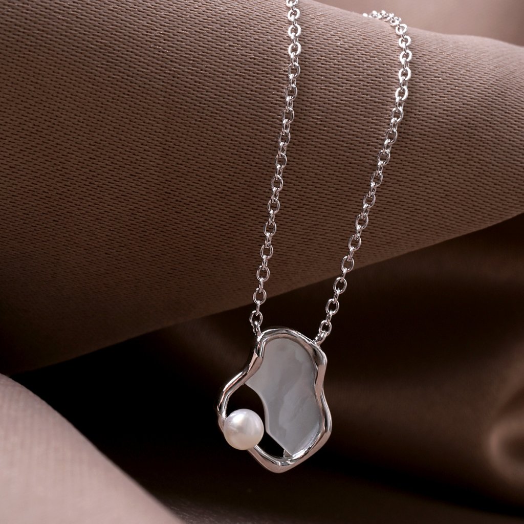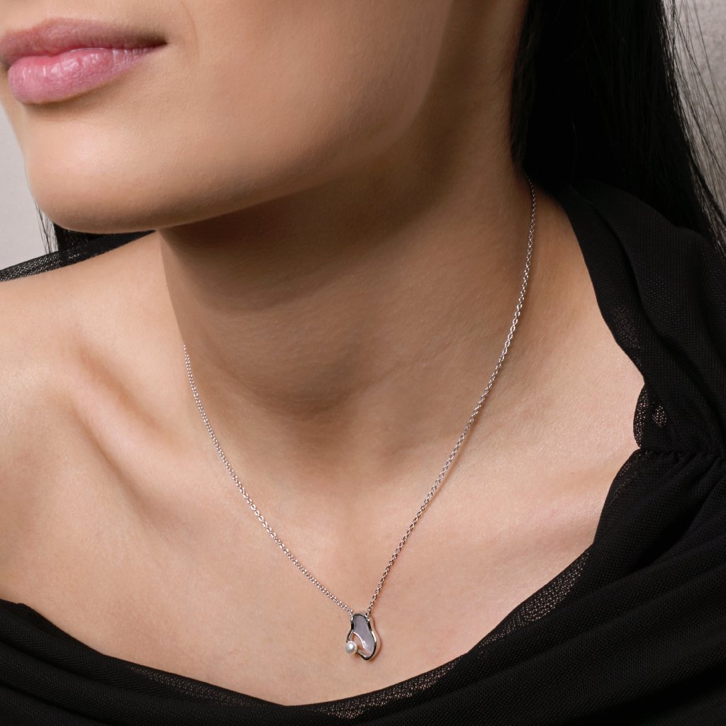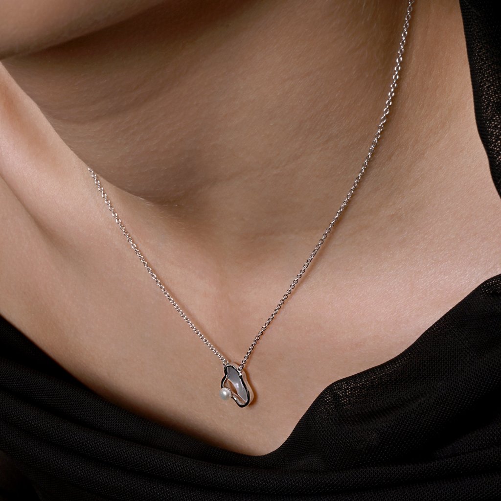 Strieborný náhrdelník nepravidelného tvaru s riečnou perlou 22056.1