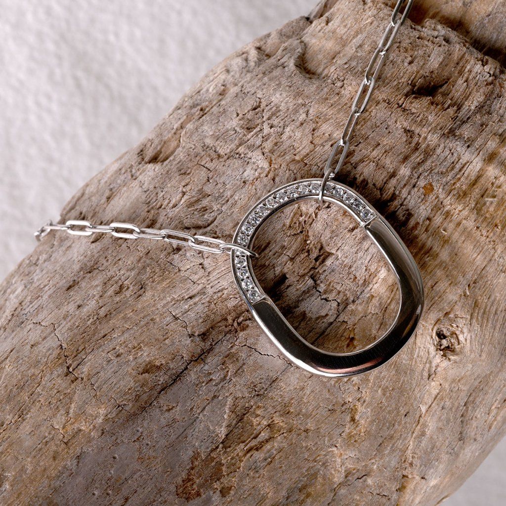 Náhrdelník 12128.1 je vyrobený zo striebra o rýdzosti 925/1000 s precíznou povrchovou úpravou. Oválny prívesok zdobený zirkónmi vytvára luxusný a nadčasový design vhodný pre každú príležitosť.