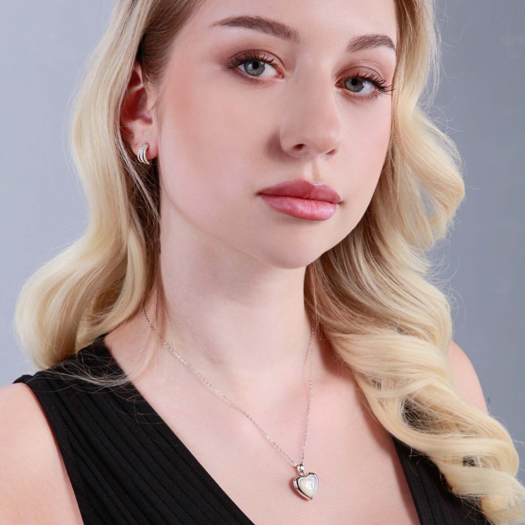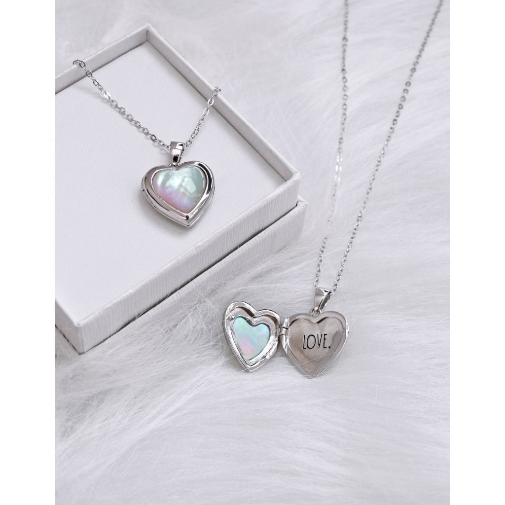 Na retiazke je zavesený strieborný prívesok v tvare srdca zdobený perleťou. Náhrdelník neobsahuje nikel, a tak si ho bez obáv môžu zobrať aj alergici.