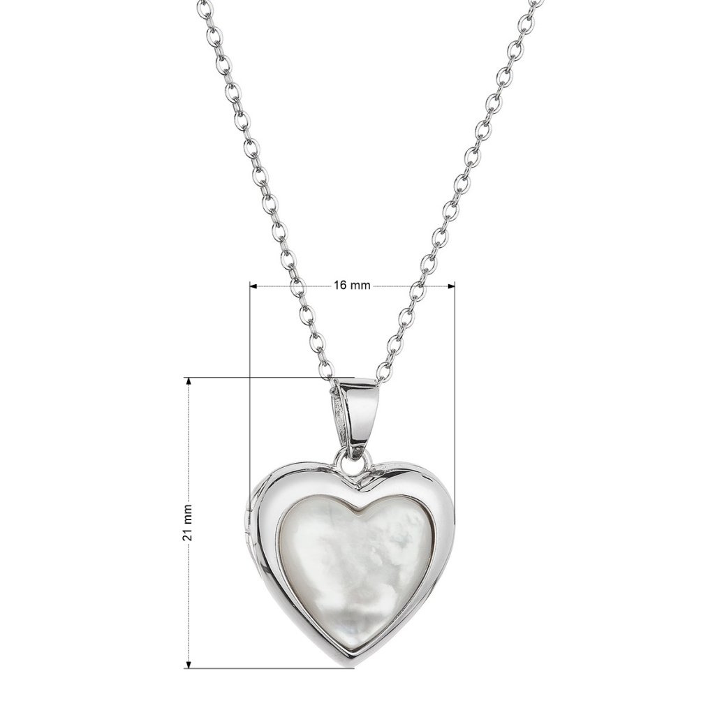Luxusný strieborný náhrdelník s perleťovým srdcom, ktoré je možné otvoriť a vložiť doň fotku svojich milovaných.Strieborný náhrdelník 12075.1 je vyrobený zo striebra o rýdzosti 925/1000 vrátane povrchovej úpravy ródiom. Ródium ochráni šperk proti nechcenému sčernaniu, zožltnutiu i poškriabaniu.