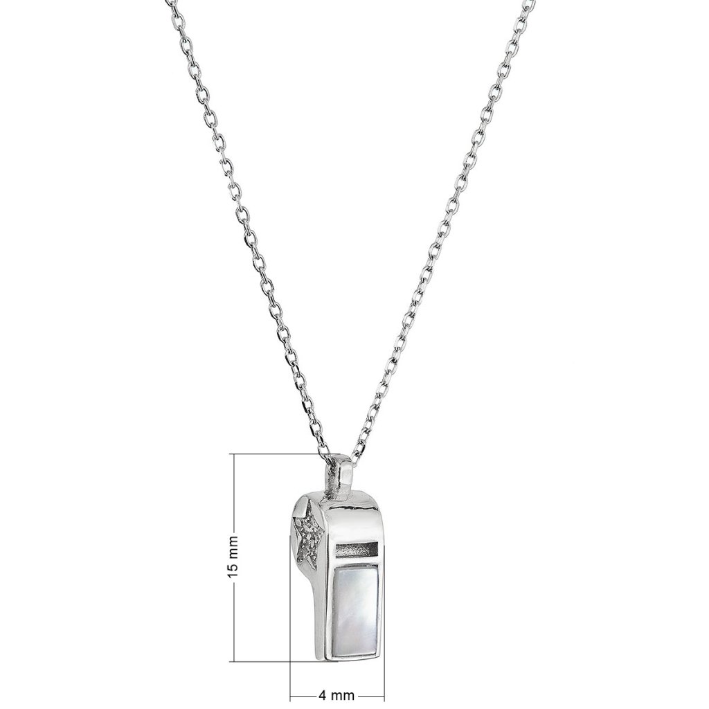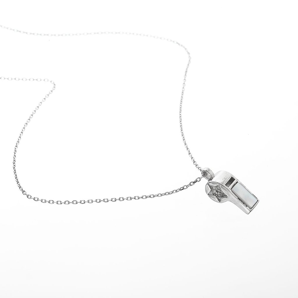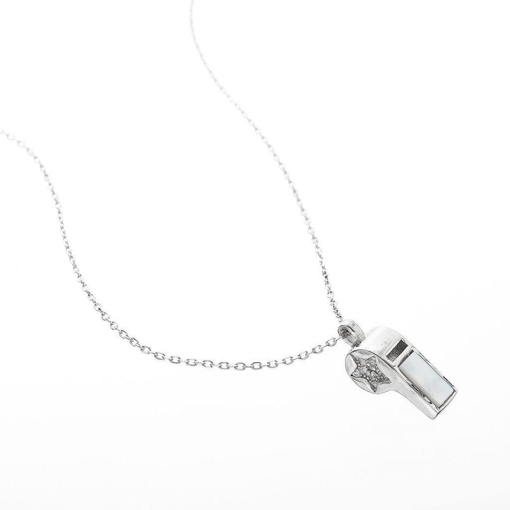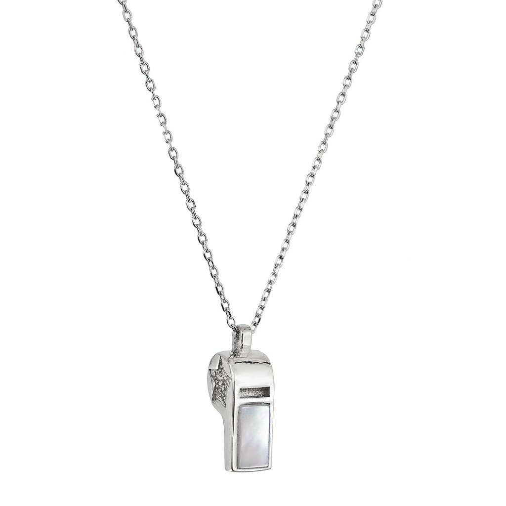 Štýlový, hravý as nádychom autority - tento náhrdelník v podobe striebornej píšťalky zaujme každého, kto vie, kedy a ako "pískať". Hoci skutočne nepíska, vďaka perleťovej ploche a zirkónom v hviezde sa postará o pozornosť, ktorú si zaslúžite.