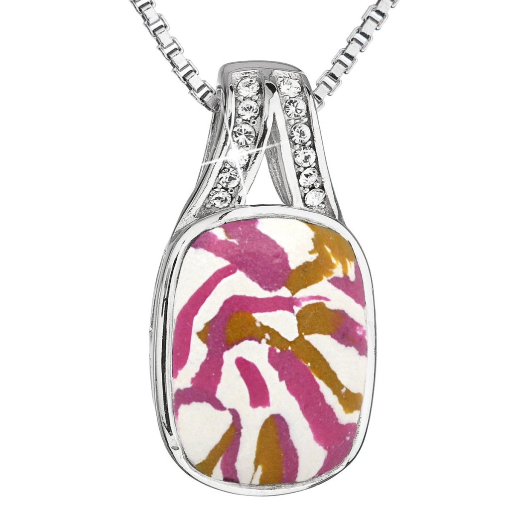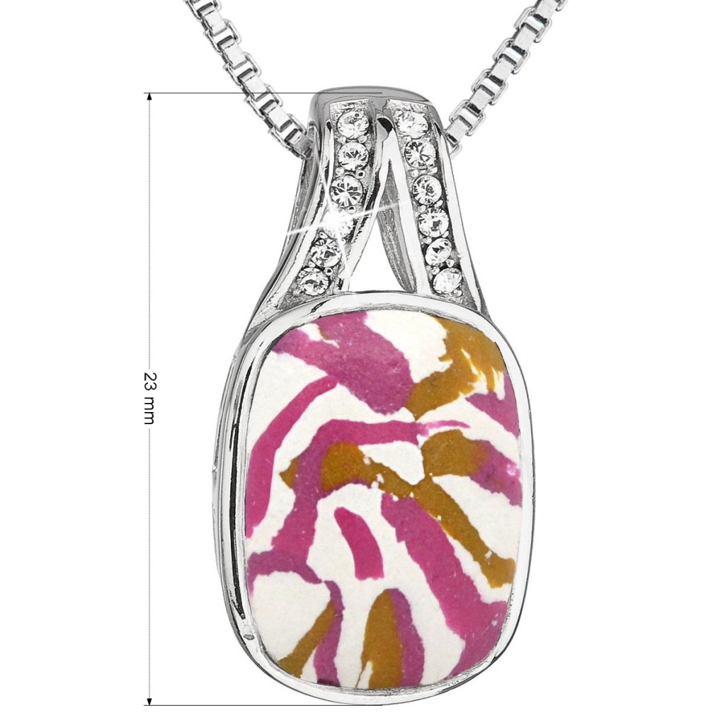 Parametre strieborného náhrdelníka obdĺžnik ružovobiely mramor s kryštálmi 72064.1