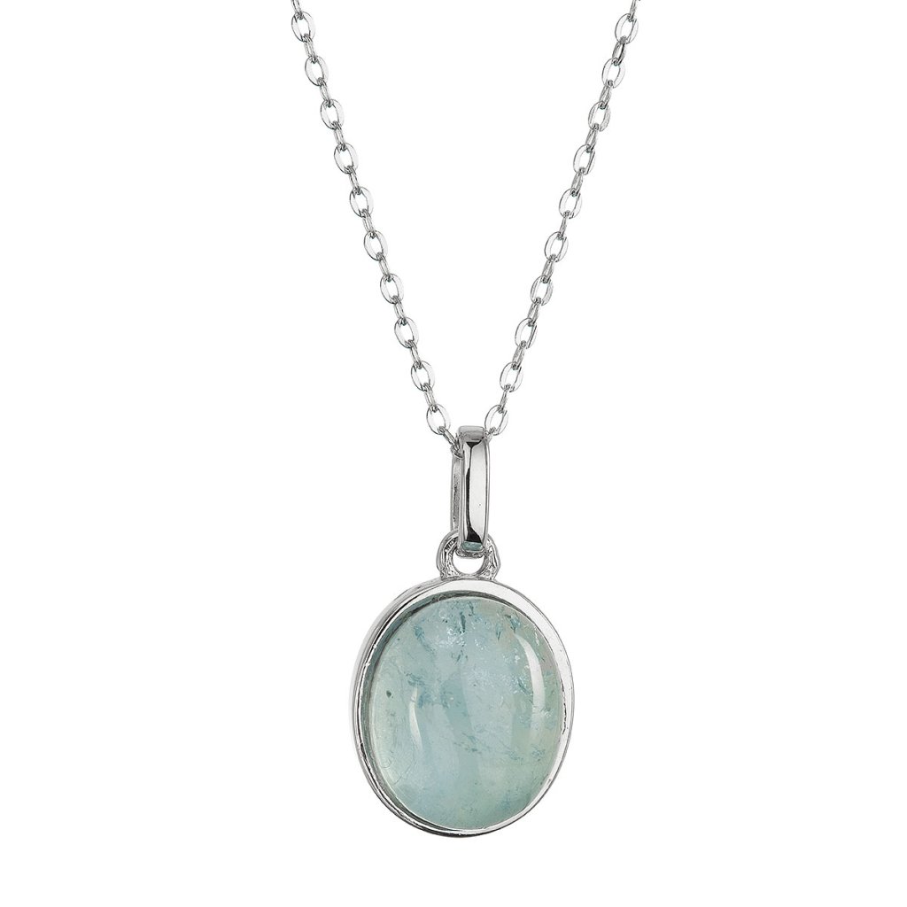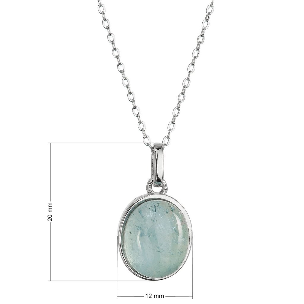 Náhrdelník s príveskom je vyrobený zo striebra rýdzosti 925/1000 s ródiovou úpravou, ktorá poskytuje šperku maximálnu ochranu pred poškriabaním, zožltnutím aj sčernením. Precízne zasadený prírodný akvamarín v nežne modrej farbe zapĺňa oválny prívesok a pripomína pokojnú hladinu oceánu zachytenú v jedinom okamihu. Jednoduchý dizajn necháva vyniknúť prirodzenej kráse kameňa a jeho jemnému farebnému odtieňu.