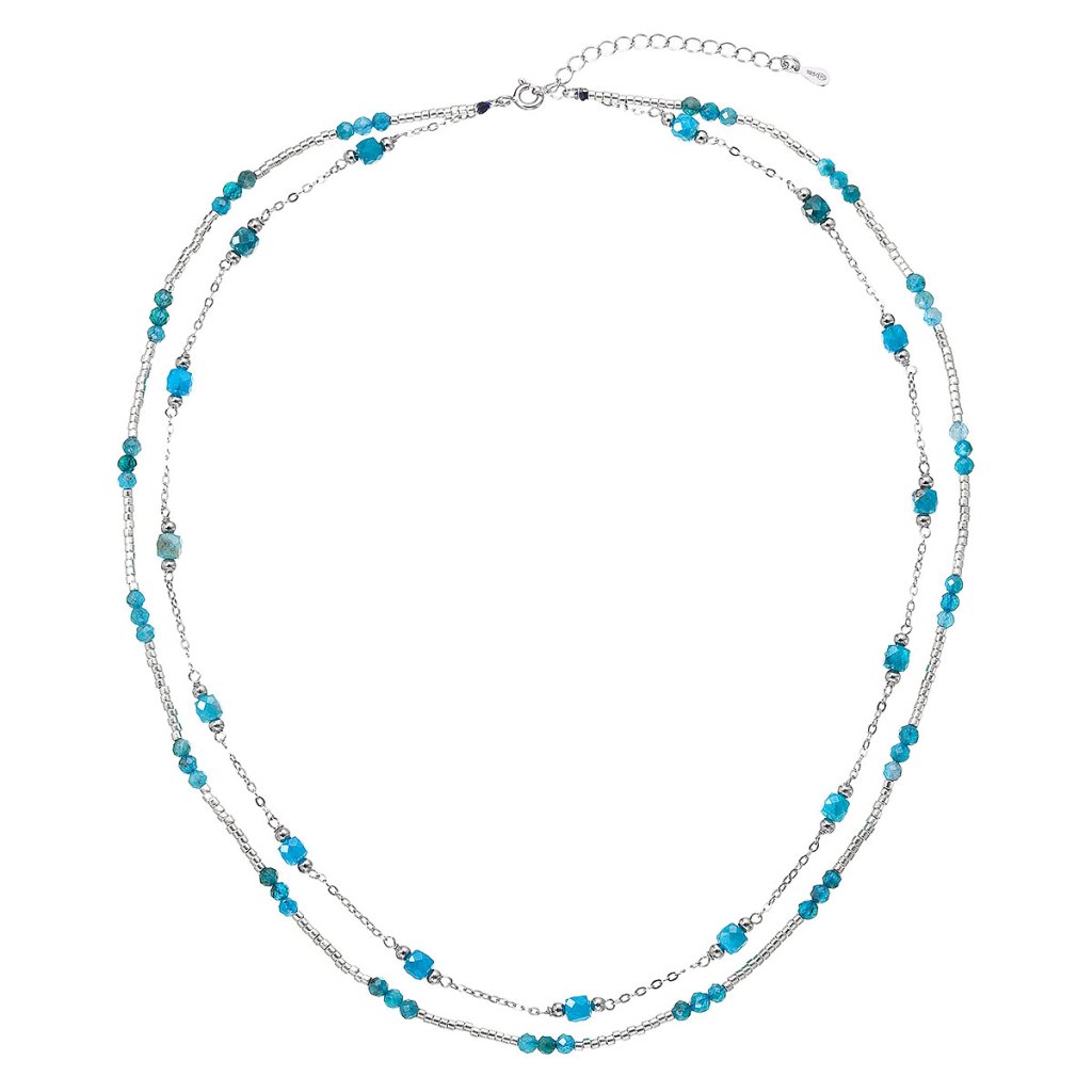 Očarujúce jemný dvojradový náhrdelník s drobnými prírodnými kamienkami apatity pôsobí ľahko a elegantne.
