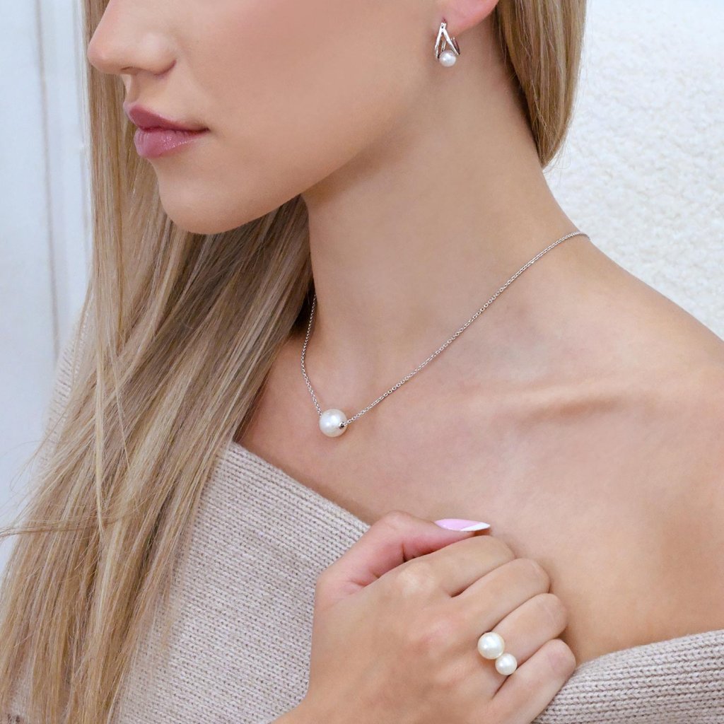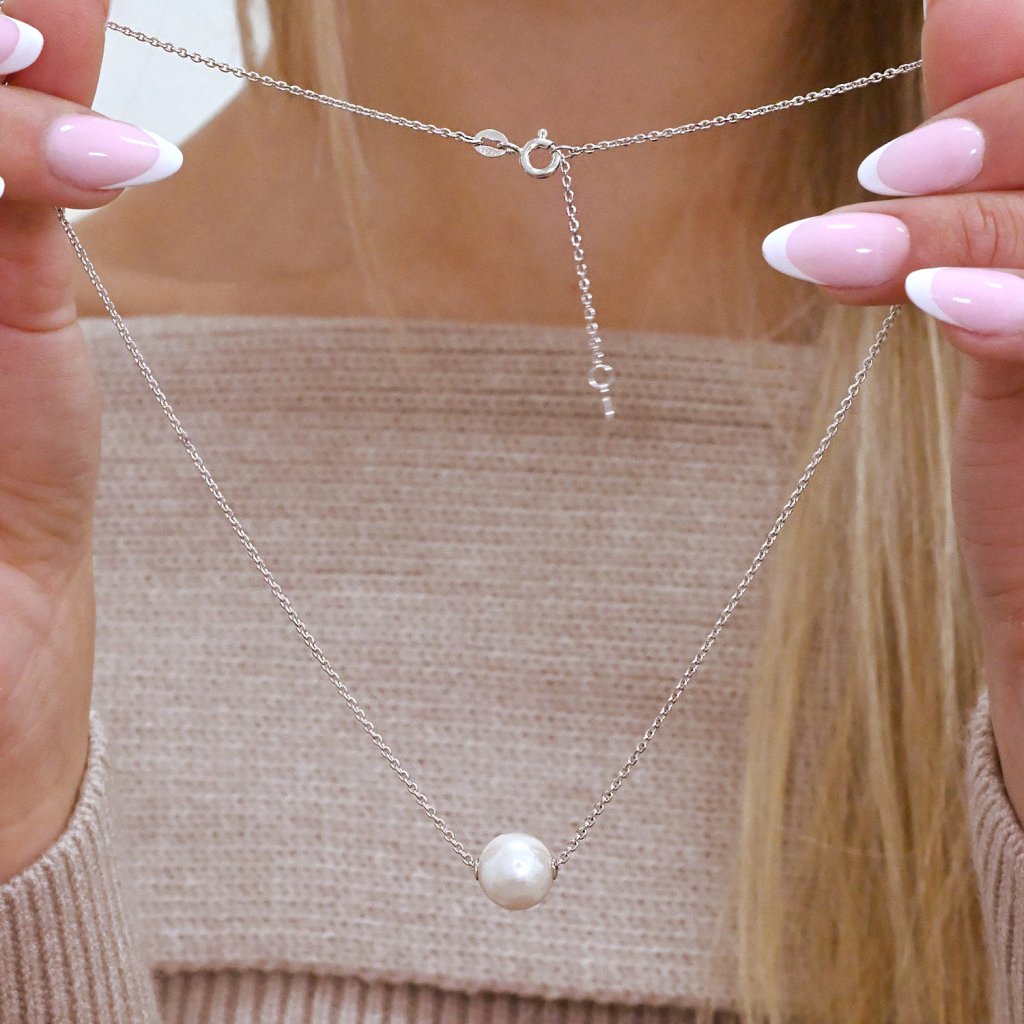 Premýšľate, čím doladiť svoj slávnostný outfit na ples? Pokiaľ ste zvolili jednoduché perlové náušnice, môžete ich doplniť ešte jemnou retiazkou 22047.1 s navlečenou veľkou bielou riečnou perlou.Retiazka je vyrobená zo striebra o rýdzosti 925/1000 vrátane povrchovej úpravy ródiom a obsahuje navlečenú bielu riečnu perlu kvality A . Náhrdelník neobsahuje nikel, a tak ho môžu obliecť aj alergici, ktorí sa nemusia obávať žiadne alergické reakcie.