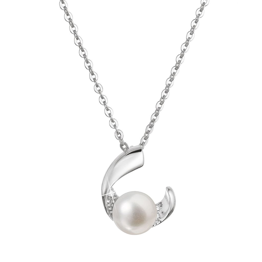 Strieborný náhrdelník s pravou riečnou perlou v polkruhu so zirkónmi 22041.1