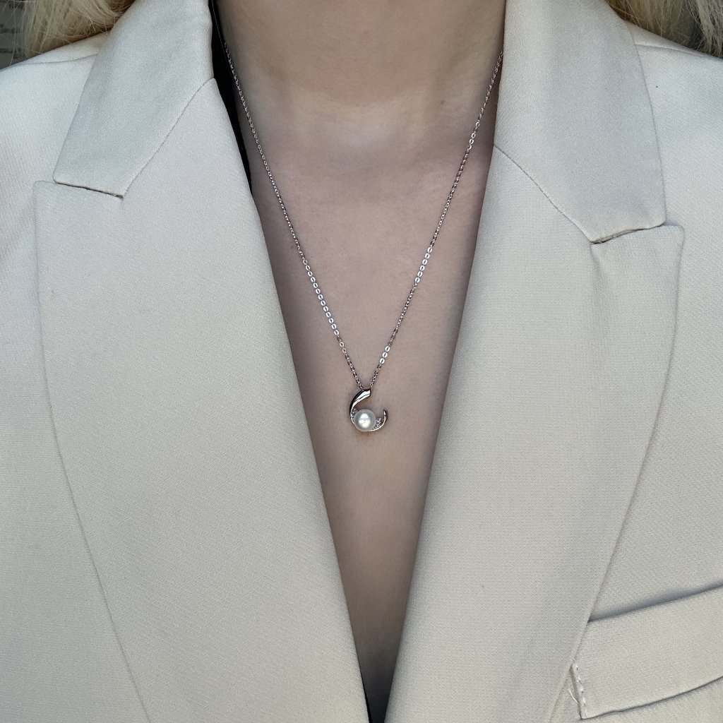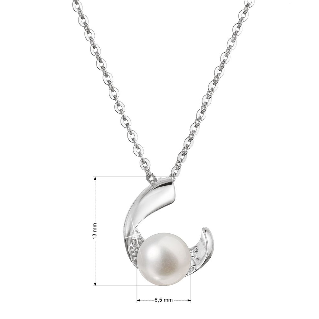 Blysknite sa na slávnostnú večeru náhrdelníkom s originálnym perlovým príveskom.Náhrdelník je vyrobený zo striebra rýdzosti 925/1000 vrátane povrchovej úpravy ródiom. Uprostred prívesku so zirkónmi je pravá riečna perla v bielej farbe s priemerom 6,5 mm. Perla patrí do kategórie kvality A . Keďže šperk neobsahuje žiadny prídavok niklu , môžu ho bez obáv nosiť aj alergici.