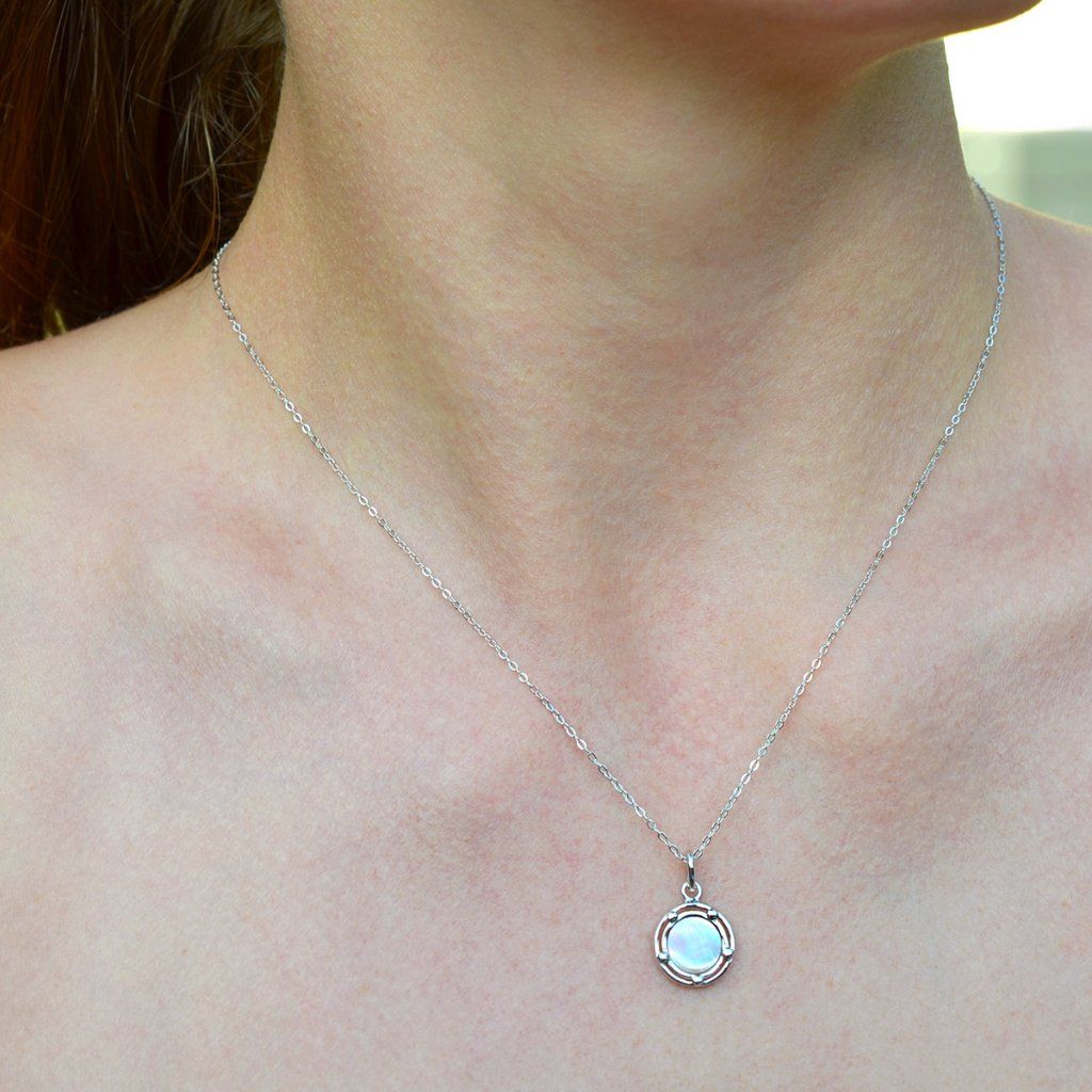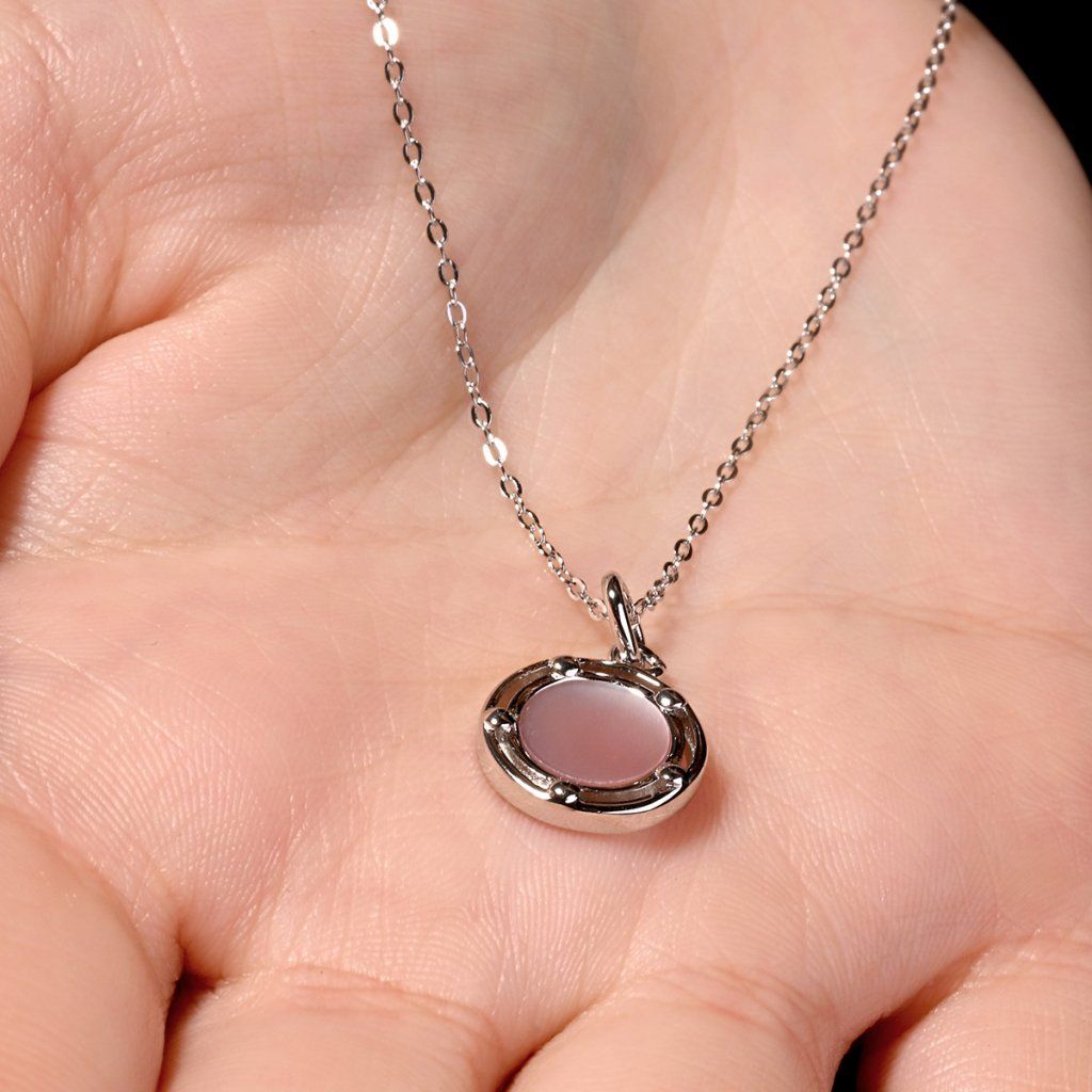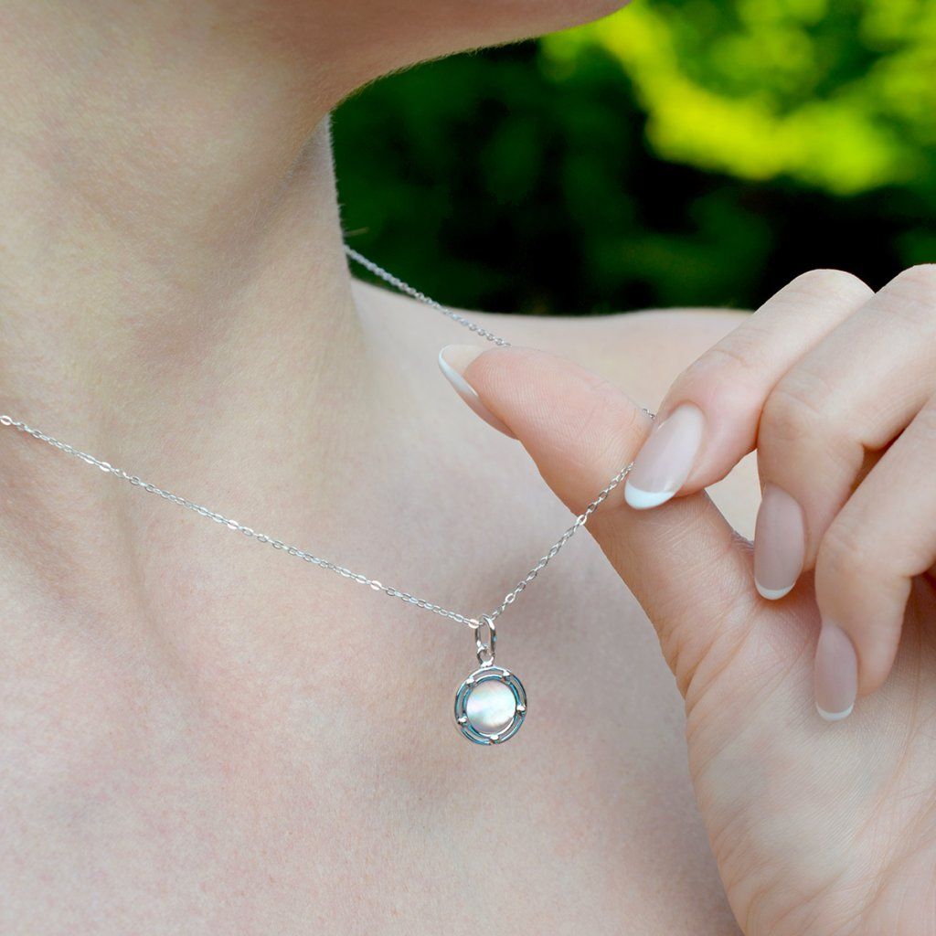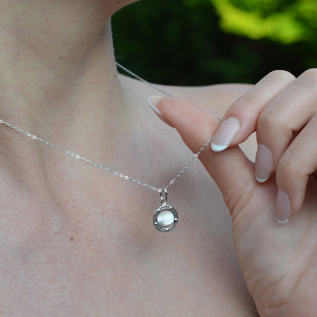 Náhrdelník s príveskom je vytvorený zo striebra rýdzosti 925/1000 s ródiovou úpravou, ktorá poskytuje šperku maximálnu ochranu pred poškriabaním, zožltnutím aj sčernením. Precízne zasadená jemne ružová perleť je nežne obomknutá pozláteným striebrom, čím vytvára dokonalú harmóniu farieb a tvarov. Okrúhly prívesok s perleťou zachytáva premenlivosť svetla - pri každom pohybe hrá jemnými farbami, ktoré očarujú svojou krehkou krásou.