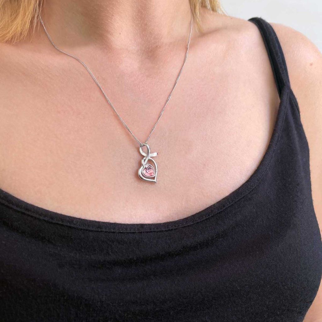 Strieborný náhrdelník so Swarovski kryštálom ružové srdce 32071.3