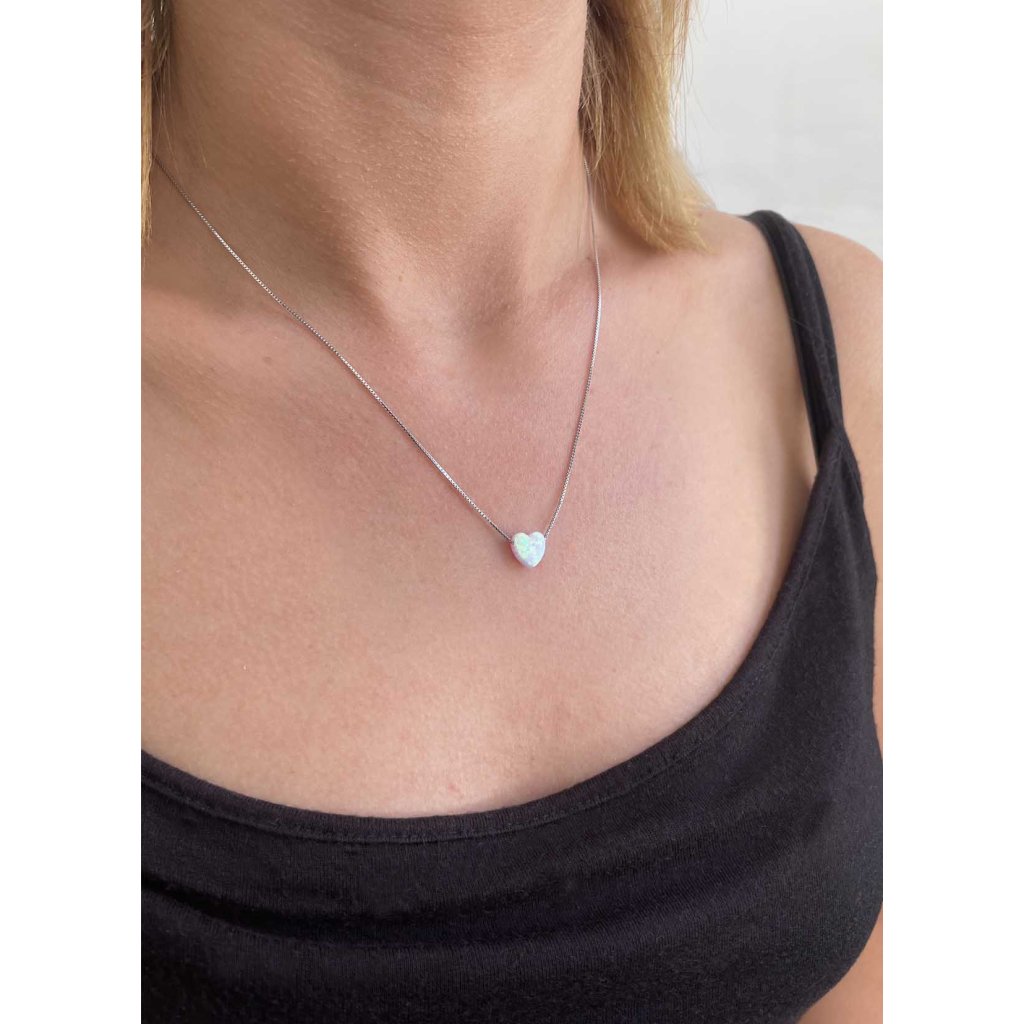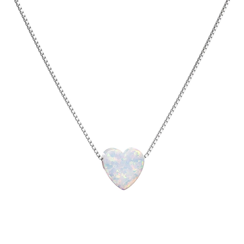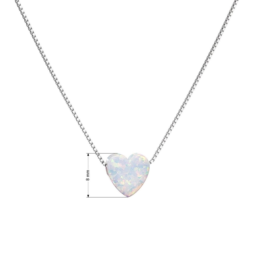 Strieborný náhrdelník so syntetickým opálom biele srdce 12048.1