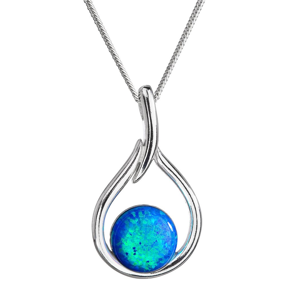 Strieborný náhrdelník so syntetickým opálom modrá kvapka 12045.3