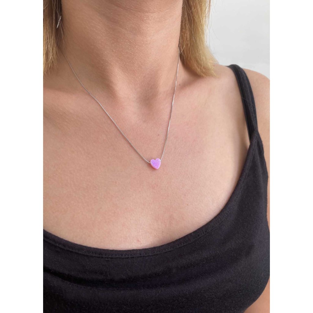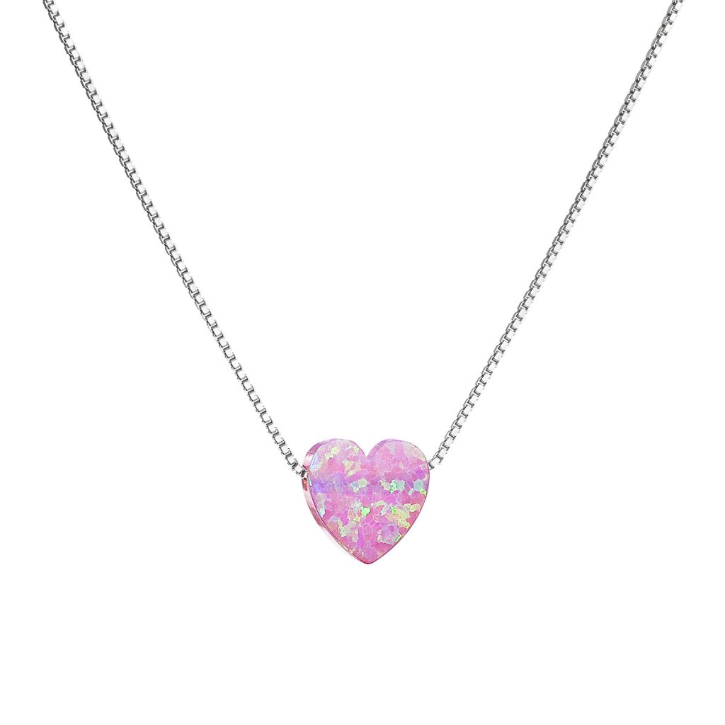 Strieborný náhrdelník so syntetickým opálom ružové srdce 12048.3