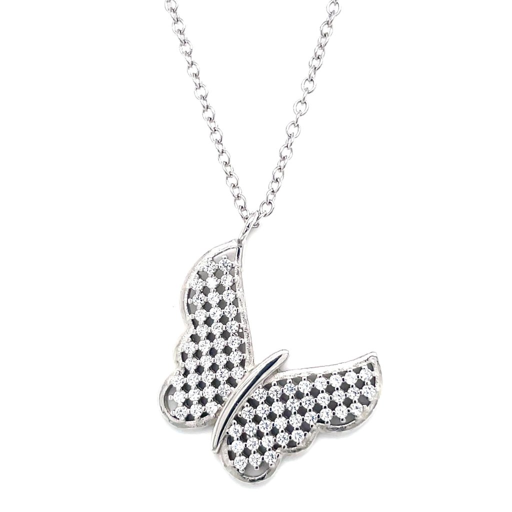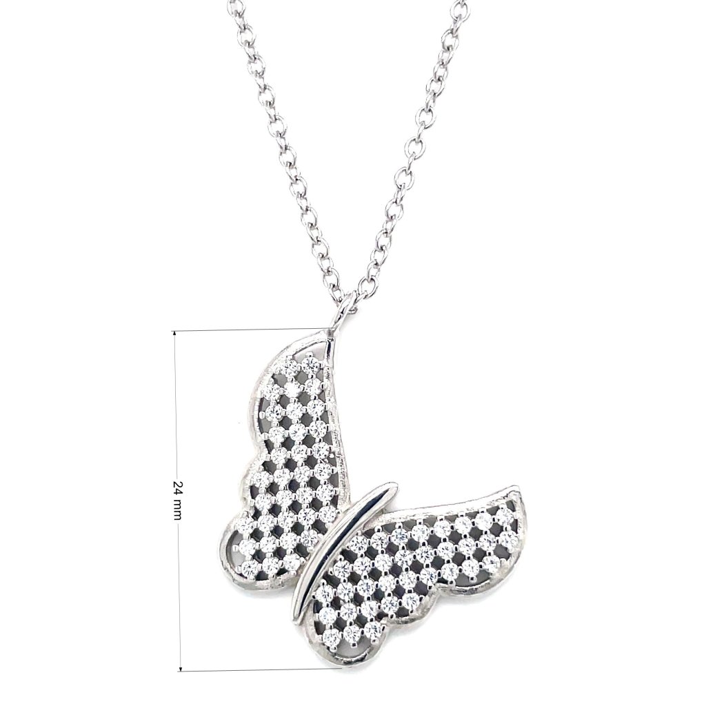 Strieborný náhrdelník so zirkónmi motýľ biely 12035.1 crystal