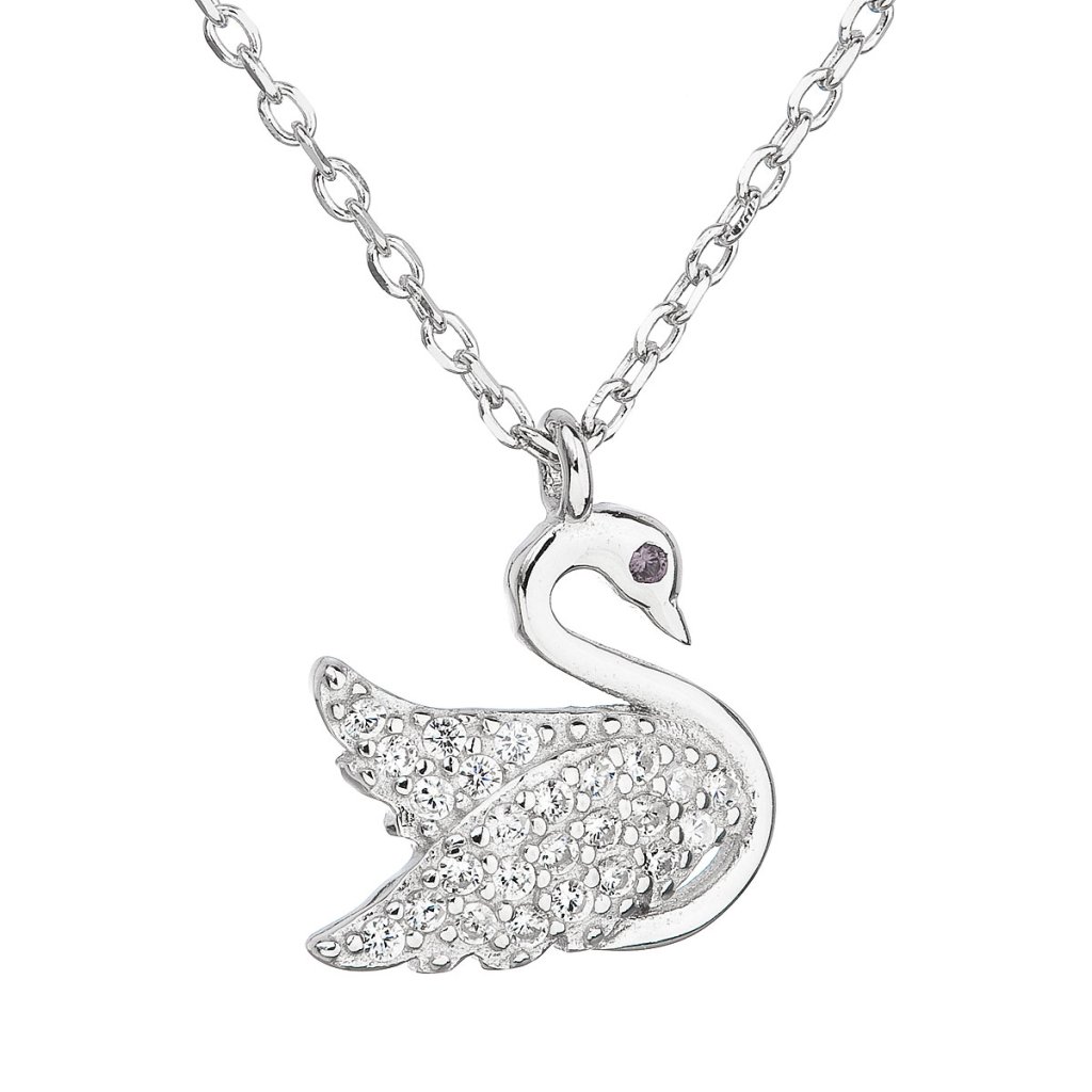 Strieborný náhrdelník so zirkónom biela labuť 12019.1