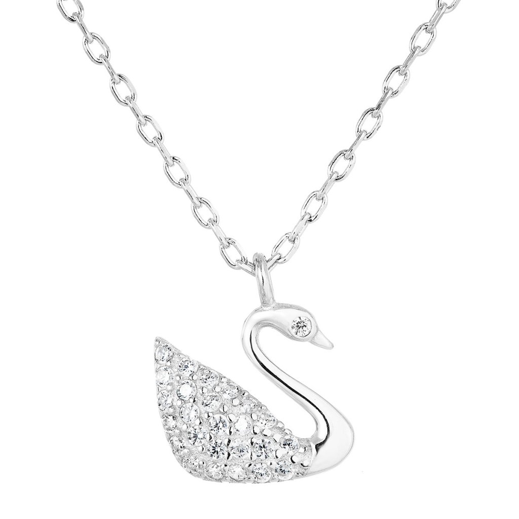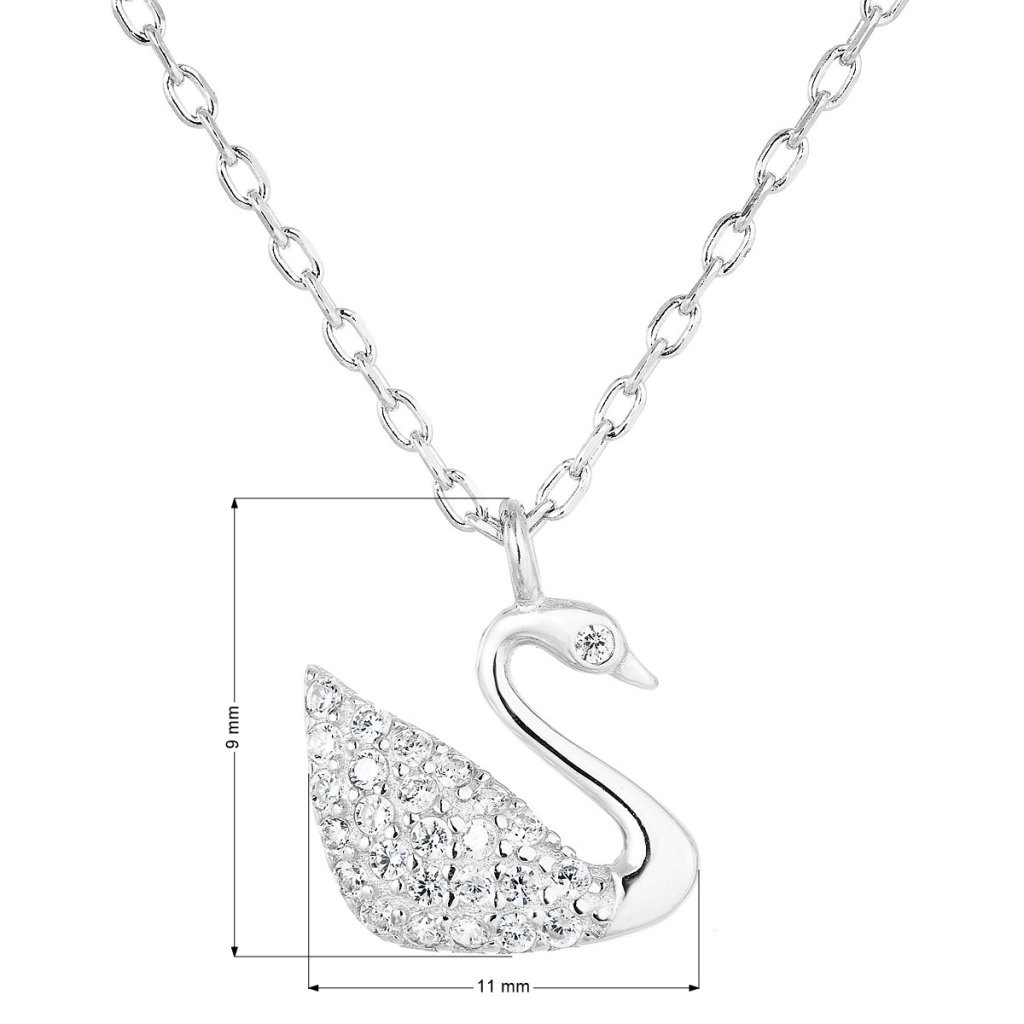 Strieborný náhrdelník so zirkónom biela labuť 12032.1
